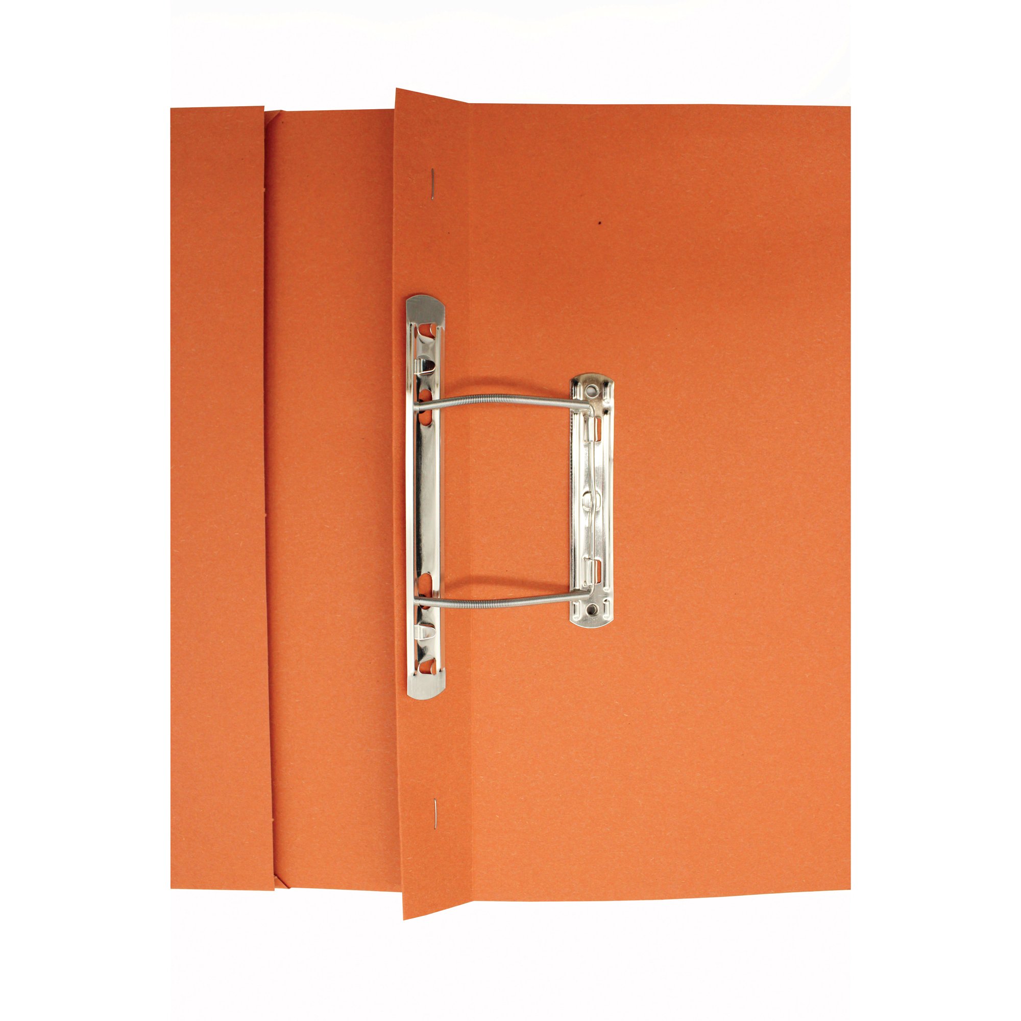 These strong 285gsm folders create a stylish filing solution for reports, presentations and more and are ideal for use in the office, home or classroom. The metal spiral fitting secures punched papers in place and allows them to be worked on whilst in the file. The useful pocket also allows you to store unpunched papers. These colourful files can be used as part of a colour coordinated filing system and have a 350 sheet capacity. This pack contains 25 foolscap files in orange.