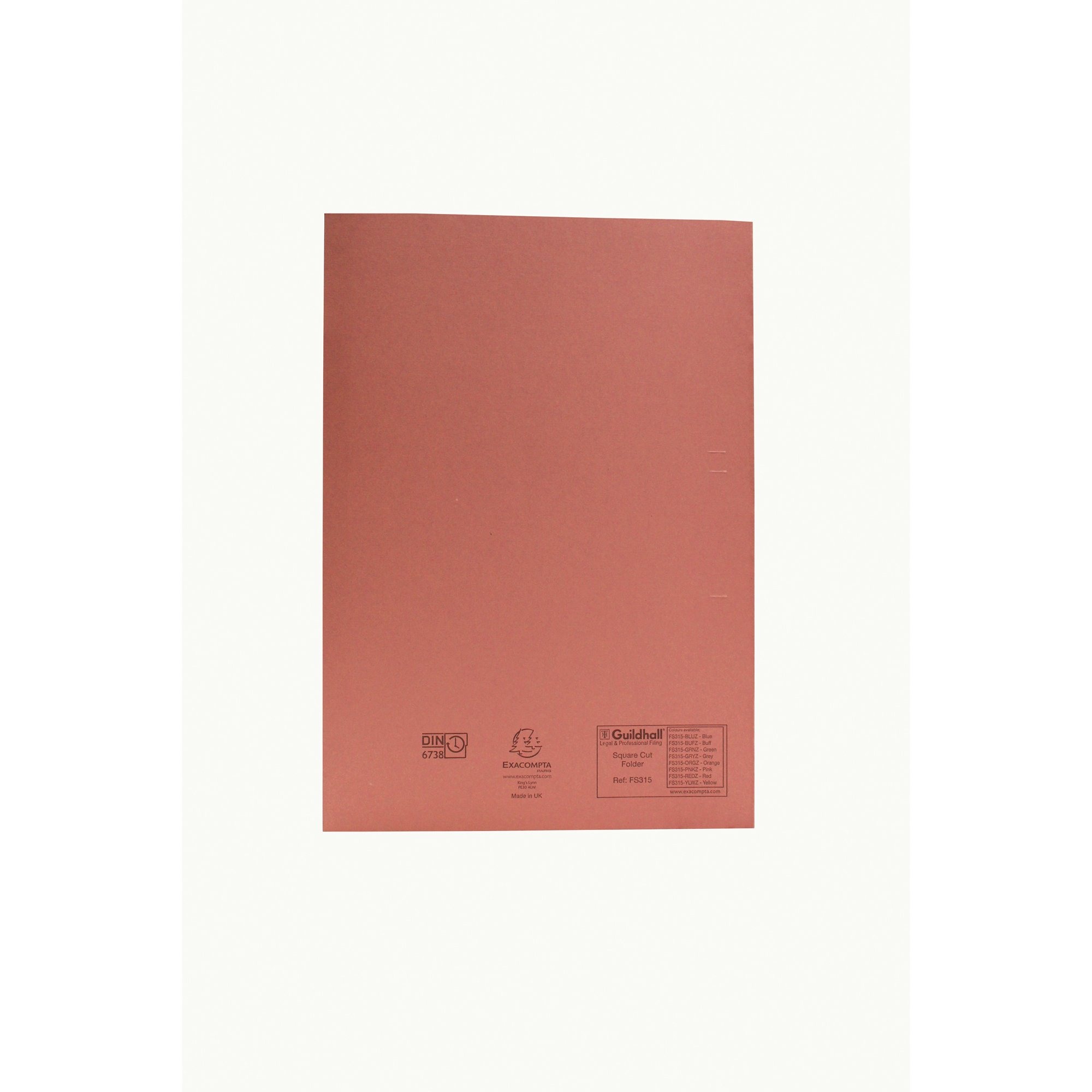 These Exacompta Guildhall square cut folders are made from durable 315gsm manilla and are ideal for desktop organisation or suspension filing. The foolscap folders can hold up to 100 sheets of 80gsm A4 or foolscap paper and measure 349 x 242mm. Ideal for colour coordinated filing, this pack contains 100 pink square cut folders.