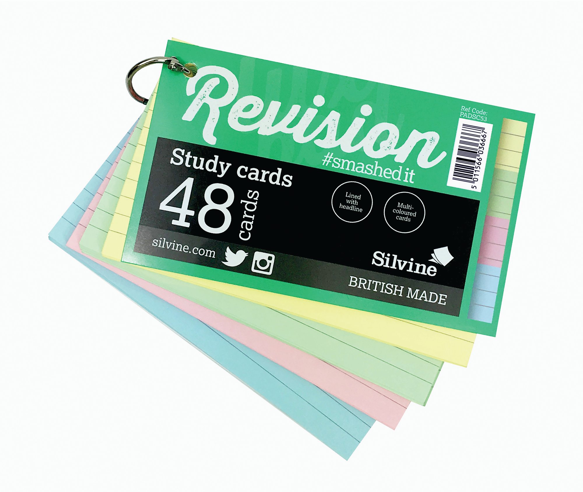 Silvine Luxpad Revision 48 Ringbound Flash Cards Ruled Assorted (Pack of 20) PADSC53