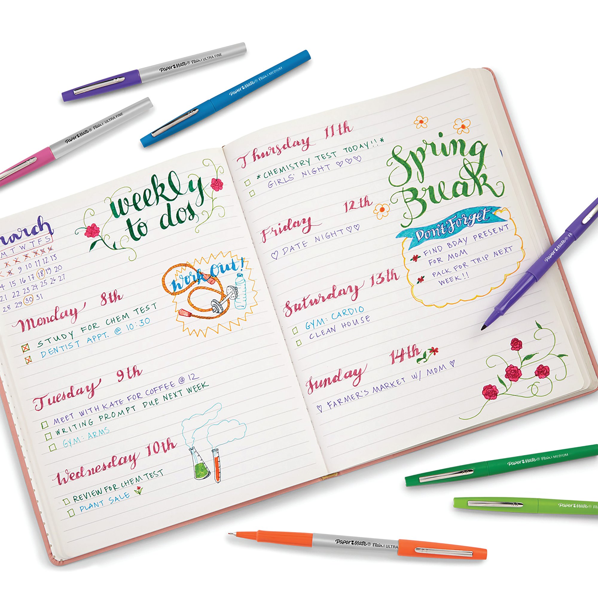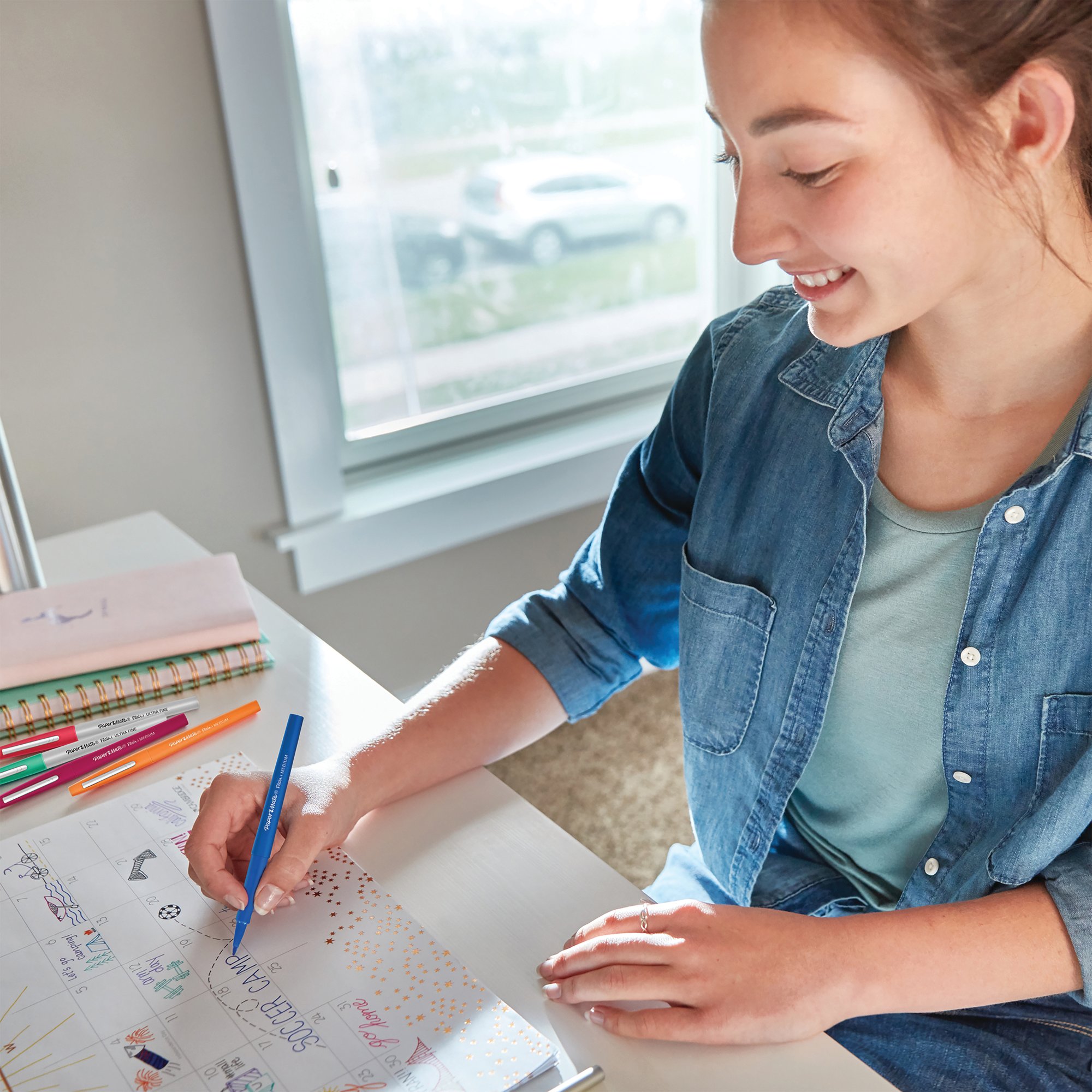 Paper Mate Flair Felt Tip Pens in bright colours with smear-resistant, no-bleed ink for colouring, journalling and more. These colouring pens feature a medium 0.7mm tip which writes in bold, expressive lines. Supplied in a pack of 6 in Tropical colours.