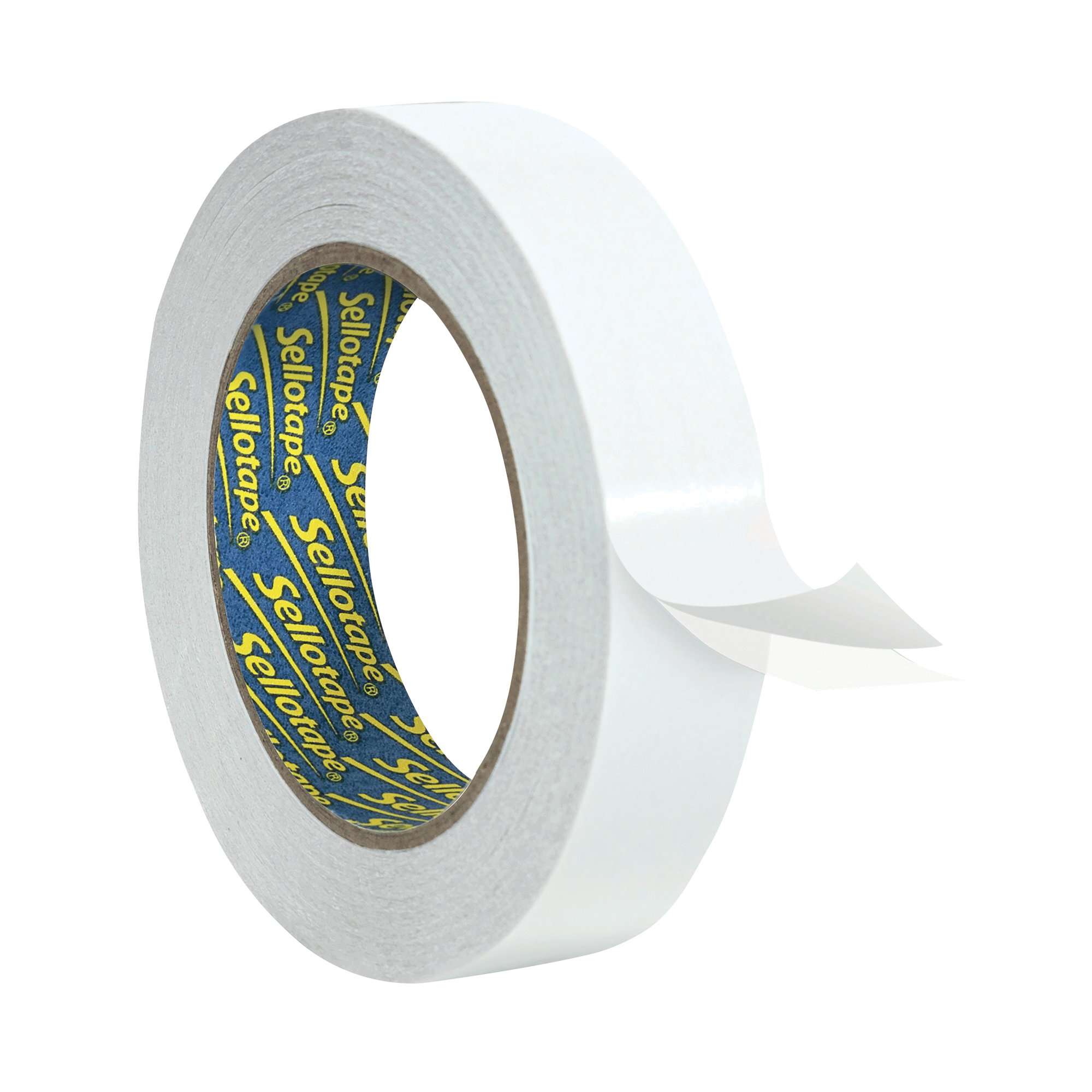 This Sellotape Double Sided Tape is coated on both sides with a strong adhesive and is ideal for mounting displays, crafts, and more. The tape is easy tear and features an easy to remove backing for quick application. This pack contains 6 large core rolls measuring 25mm x 33m.