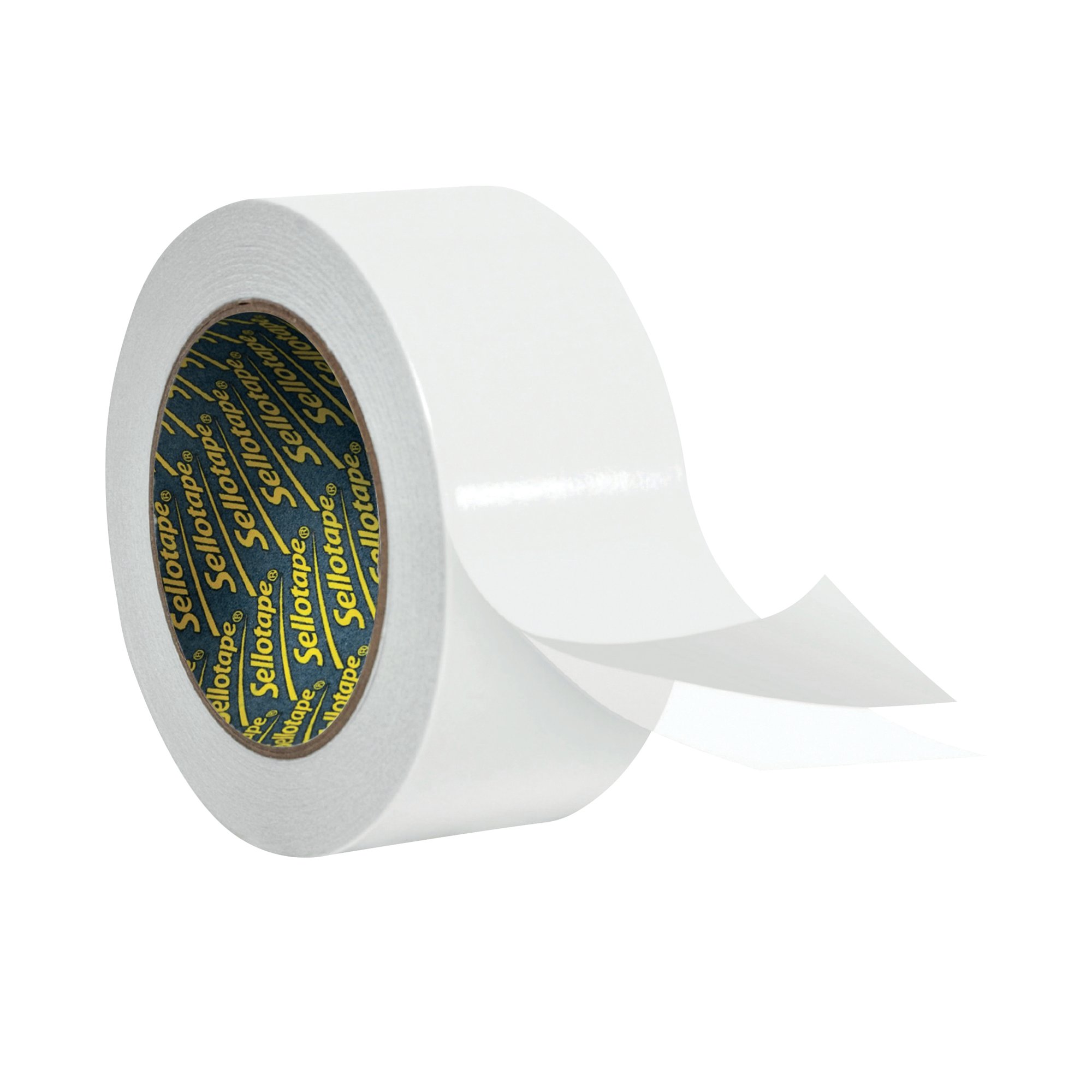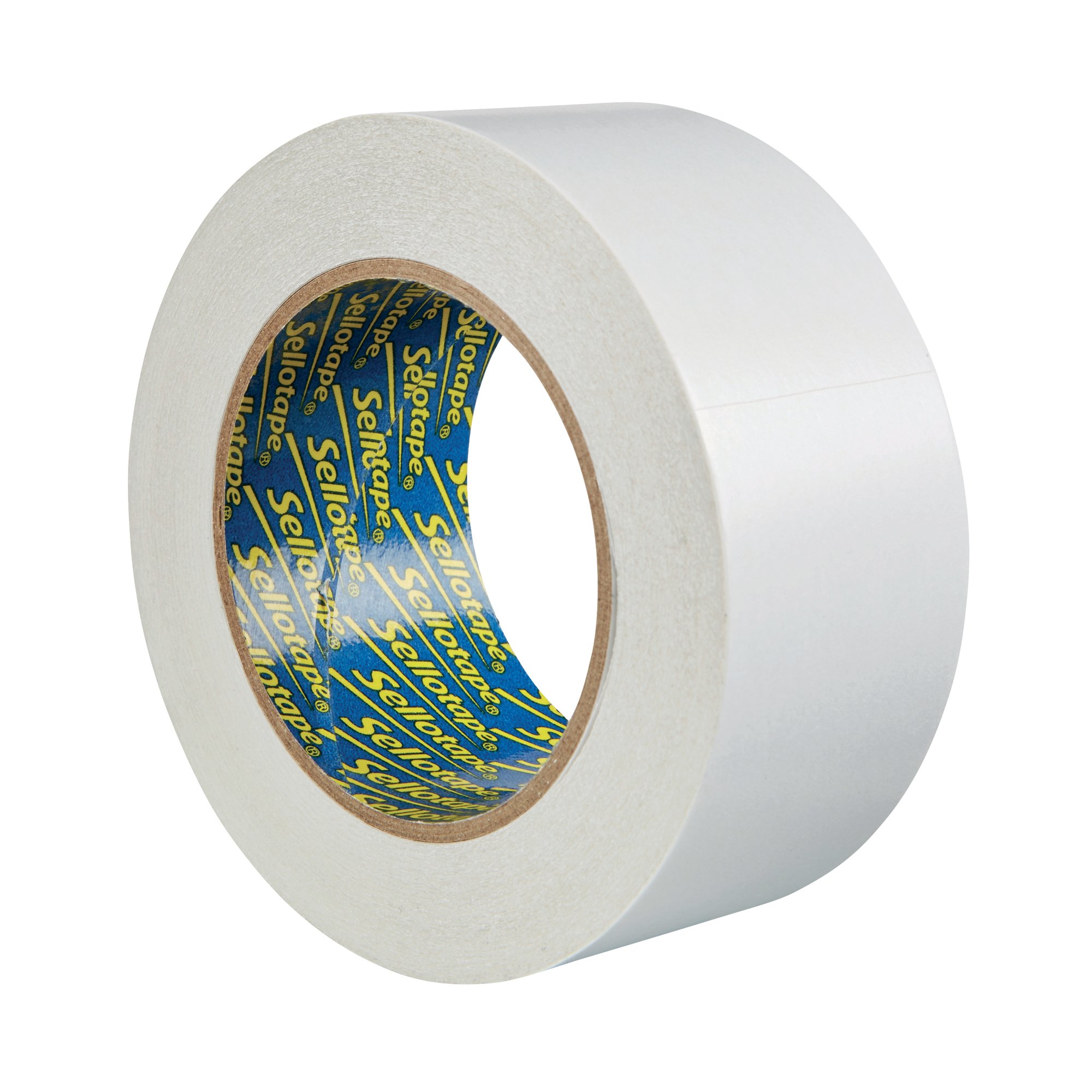This Sellotape Double Sided Tape is coated on both sides with a strong adhesive and is ideal for mounting displays, crafts, and more. The tape is easy tear and features an easy to remove backing for quick application. This pack contains 3 large core rolls measuring 50mm x 33m.