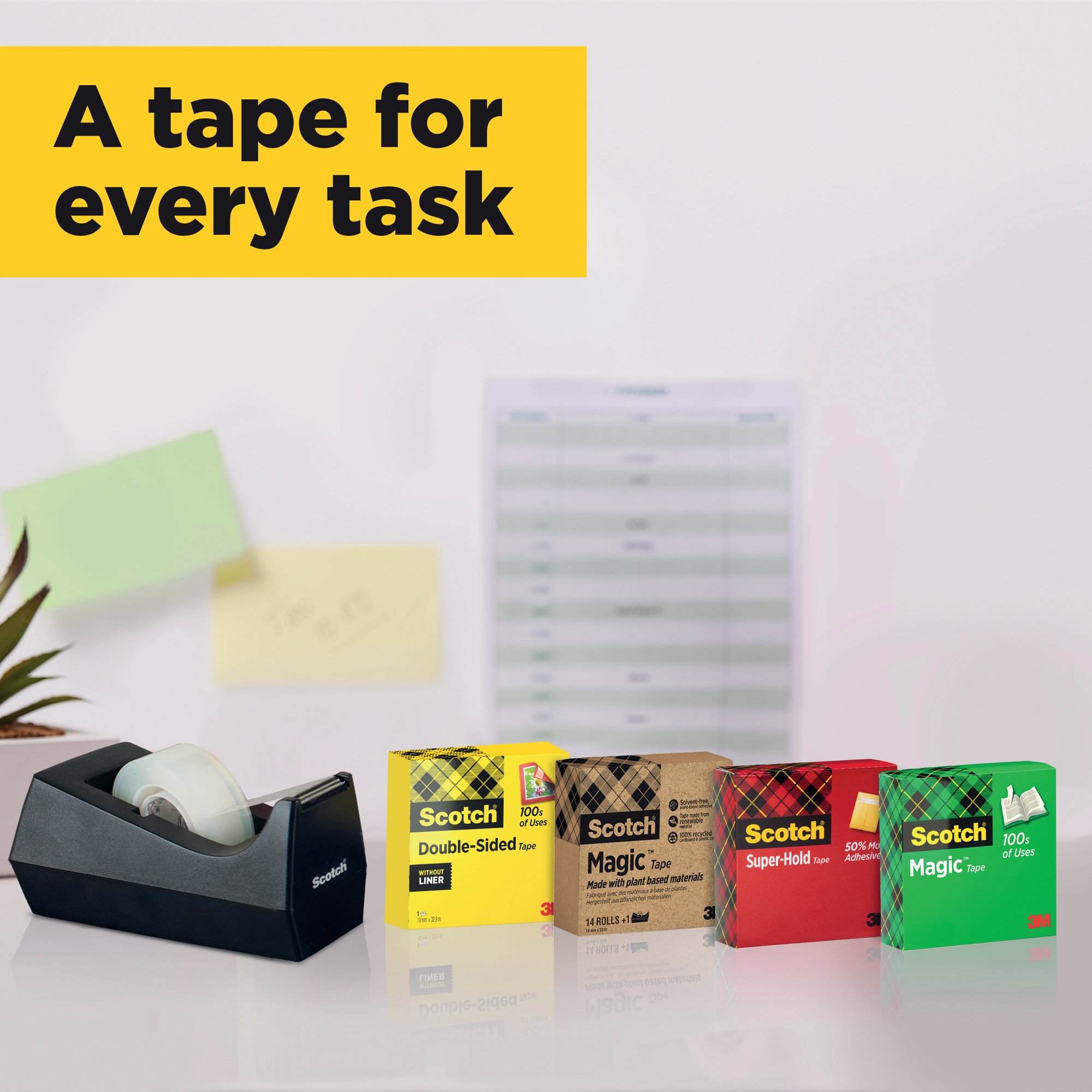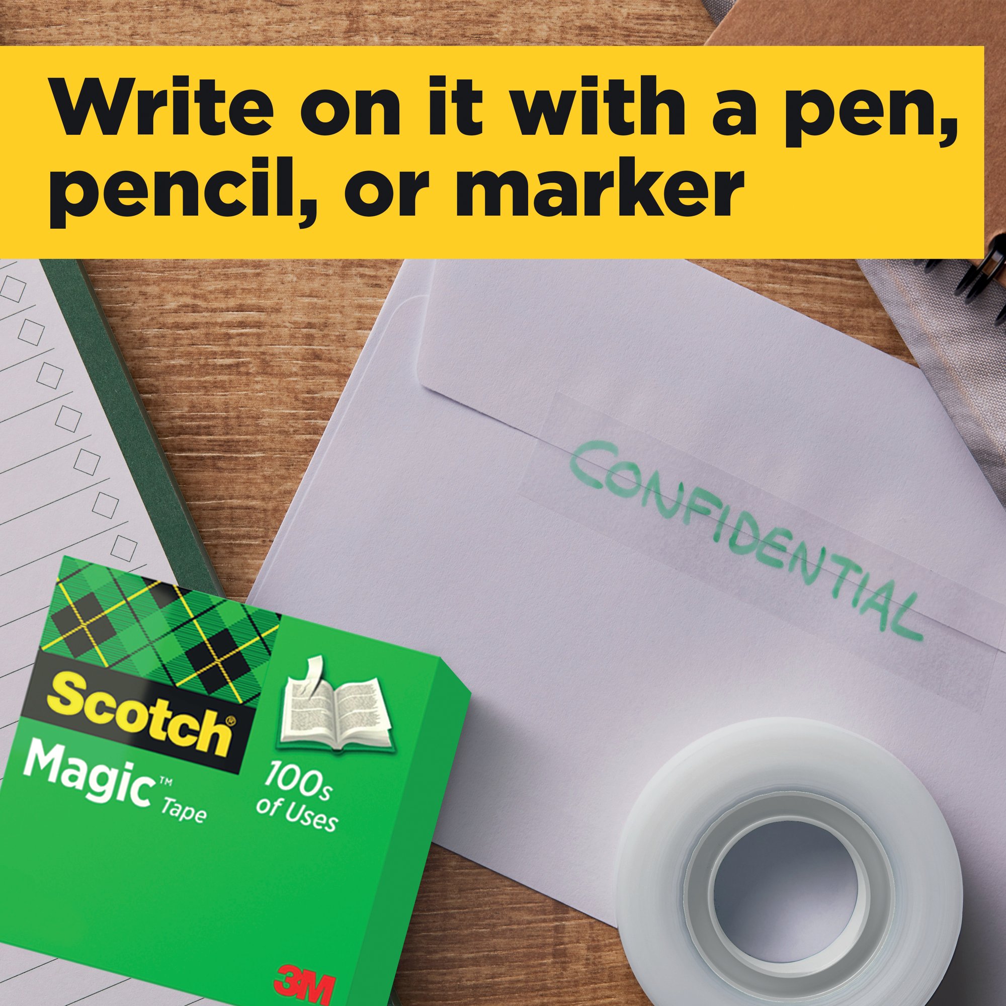 Scotch Magic Tape is a long lasting, solvent-free tape that is designed not to yellow or dry out with age. Virtually invisible when applied, this tape is perfect for making repairs to torn paper, or wrapping packages attractively. The matte surface can be written on, which is ideal for adding labels or notices to parcels. This tower pack contains 8 rolls of tape measuring 19mm x 33m.