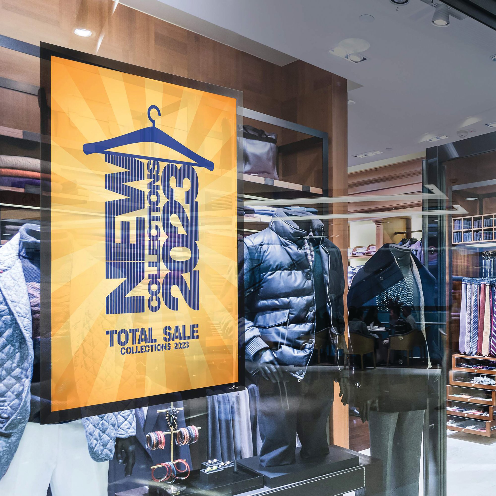 The original fold-back frame. Duraframe Poster is heat stable up to approximately 70 degrees, UV resistant and anti-glare. The frames are double-sided, so when applied to glass, different information can be displayed on either side. They are suitable for posters on walls, glass and shop windows etc. Quick insertion and exchange of documents via a fold-back magnetic frame helps with quick-changing, seasonal signage. Bubble-free attachment thanks to two adhesive strips on the back, to give a professional look. The frames can be removed without leaving any residue and can be used in portrait and landscape orientations.