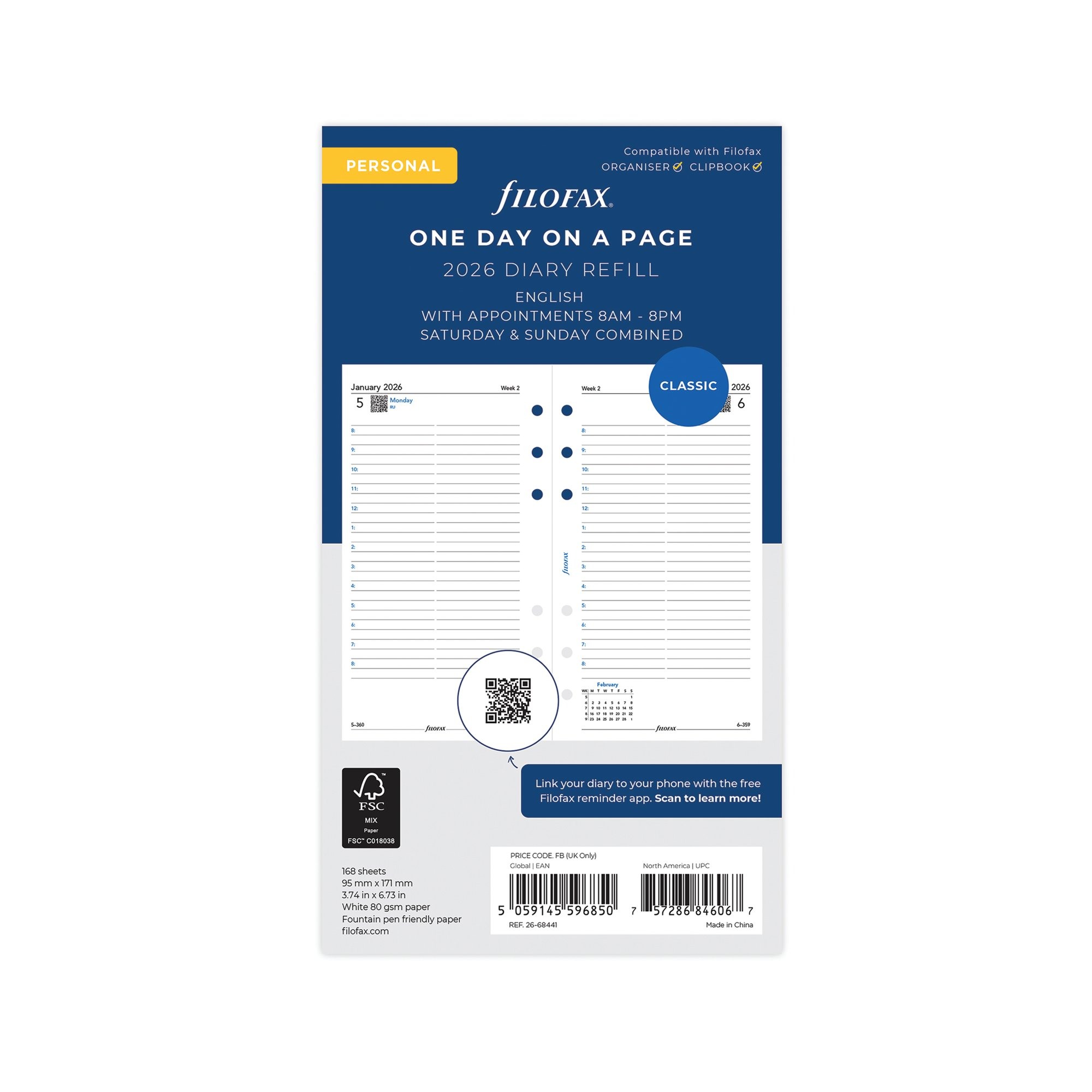 Filofax Refill Personal Day Per Page Appointment 2026 26-68441