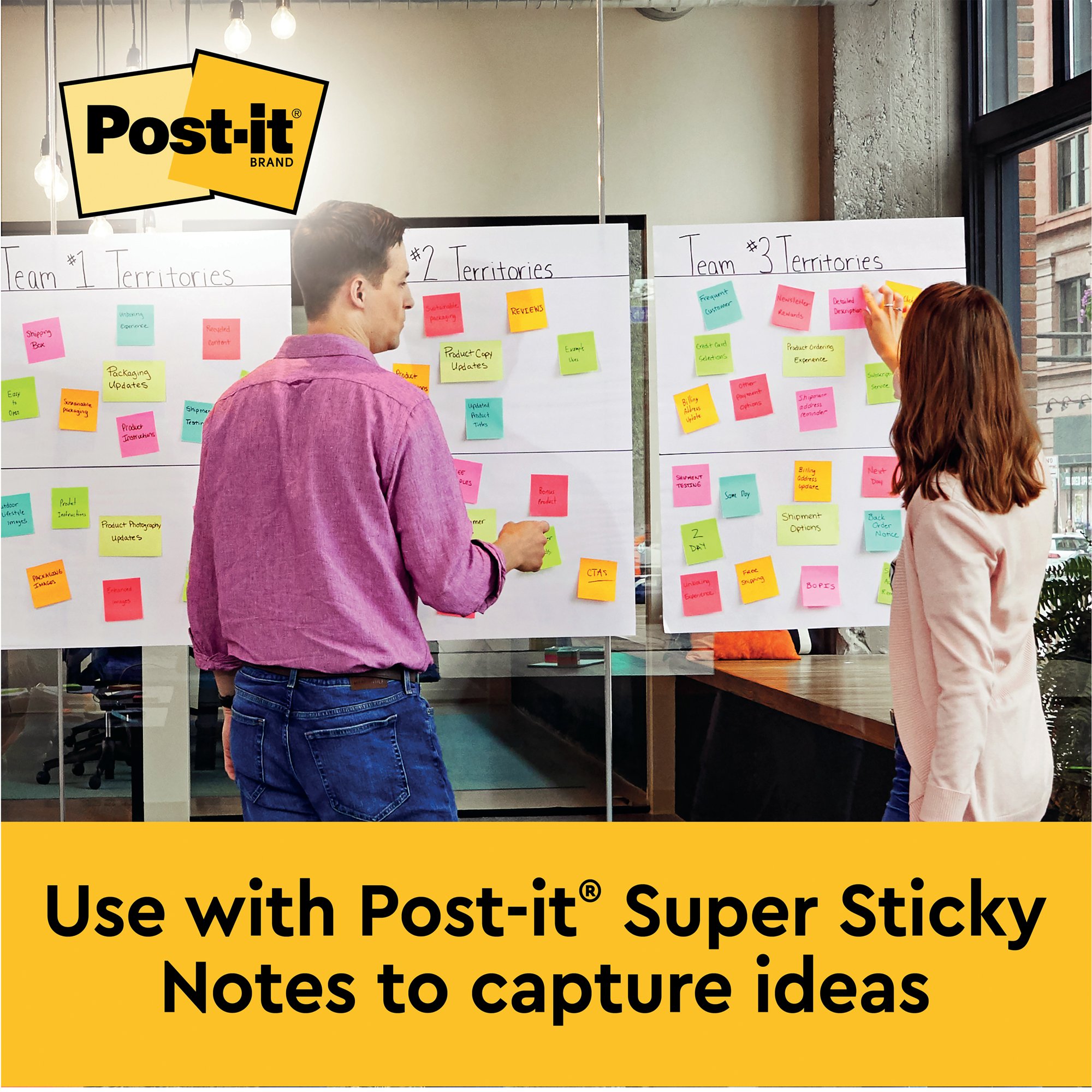 This Post-it bundle features Super Sticky Meeting Charts and Super Sticky Notes for supporting collaborative teamwork, presentations and problem solving. With adhesive backings, Post-it Meeting Charts and Notes stick securely and reliably to most walls and surfaces and can be cleanly removed and repositioned without damage. Made from high quality paper with bleed-through resistance, both products make teamwork a breeze. Supplied in a pack of 2 meeting chart pads + 4 Note pads.