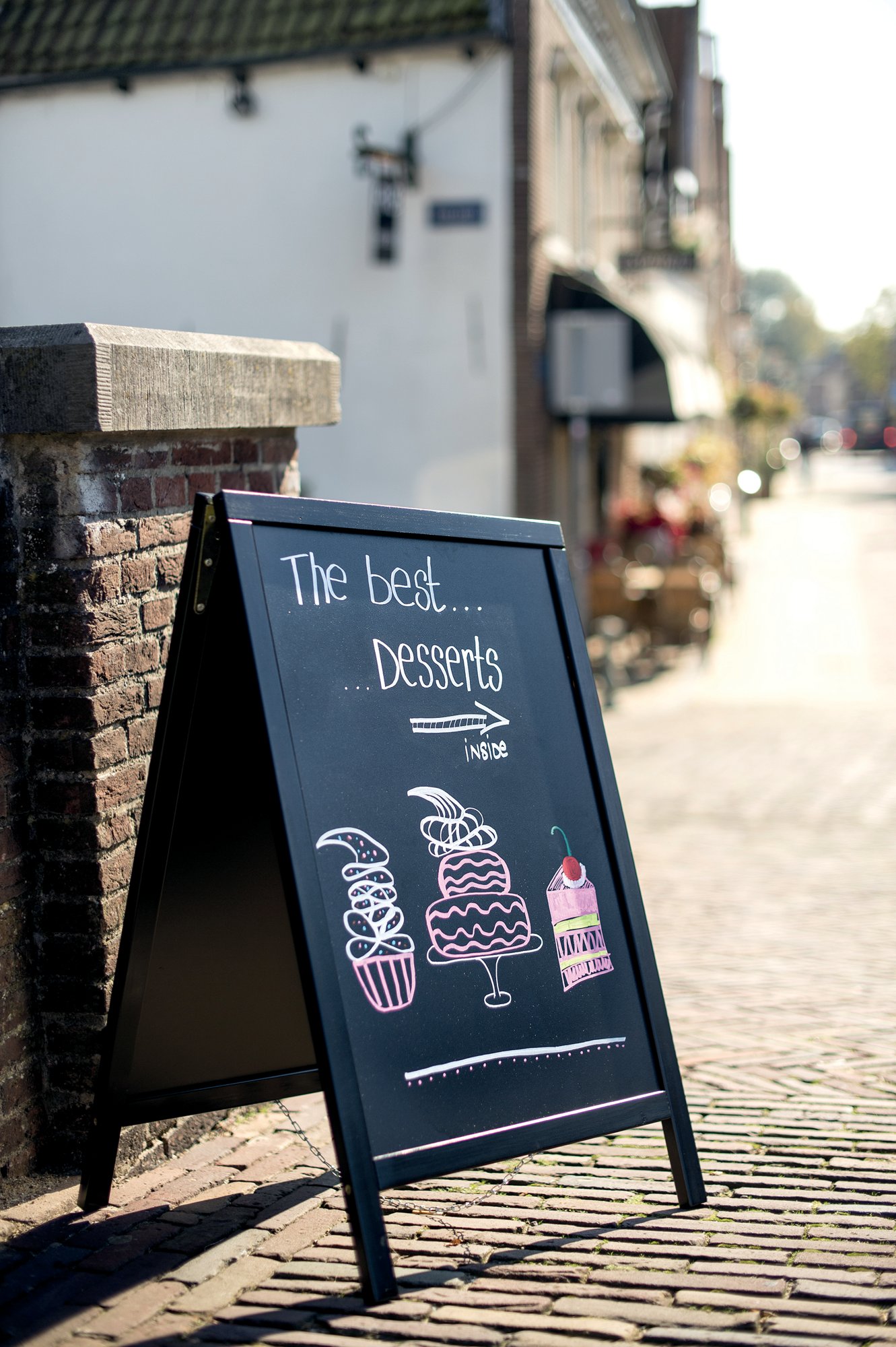 Securit Woody pavement boards are a smart choice within cafes, bars, restaurants and shops. This small all-weather pavement board with a scratch resistant and UV-proof writing surface is built with a solid double-lacquered pinewood frame in black and finished with stainless steel hardware. Designed to withstand 25 km/h winds.