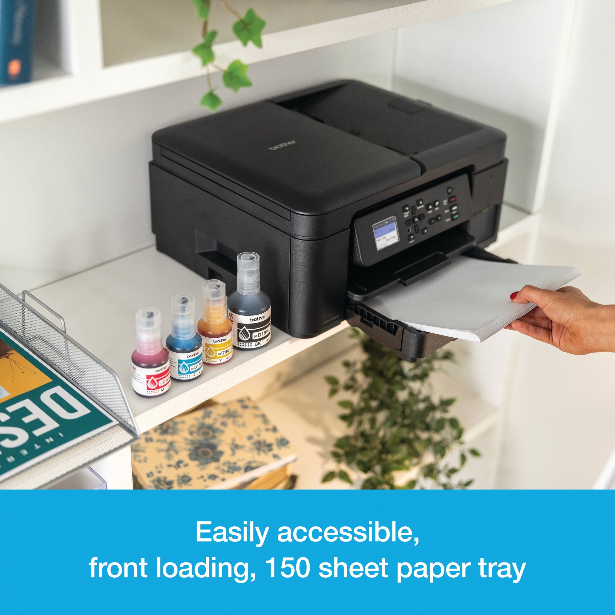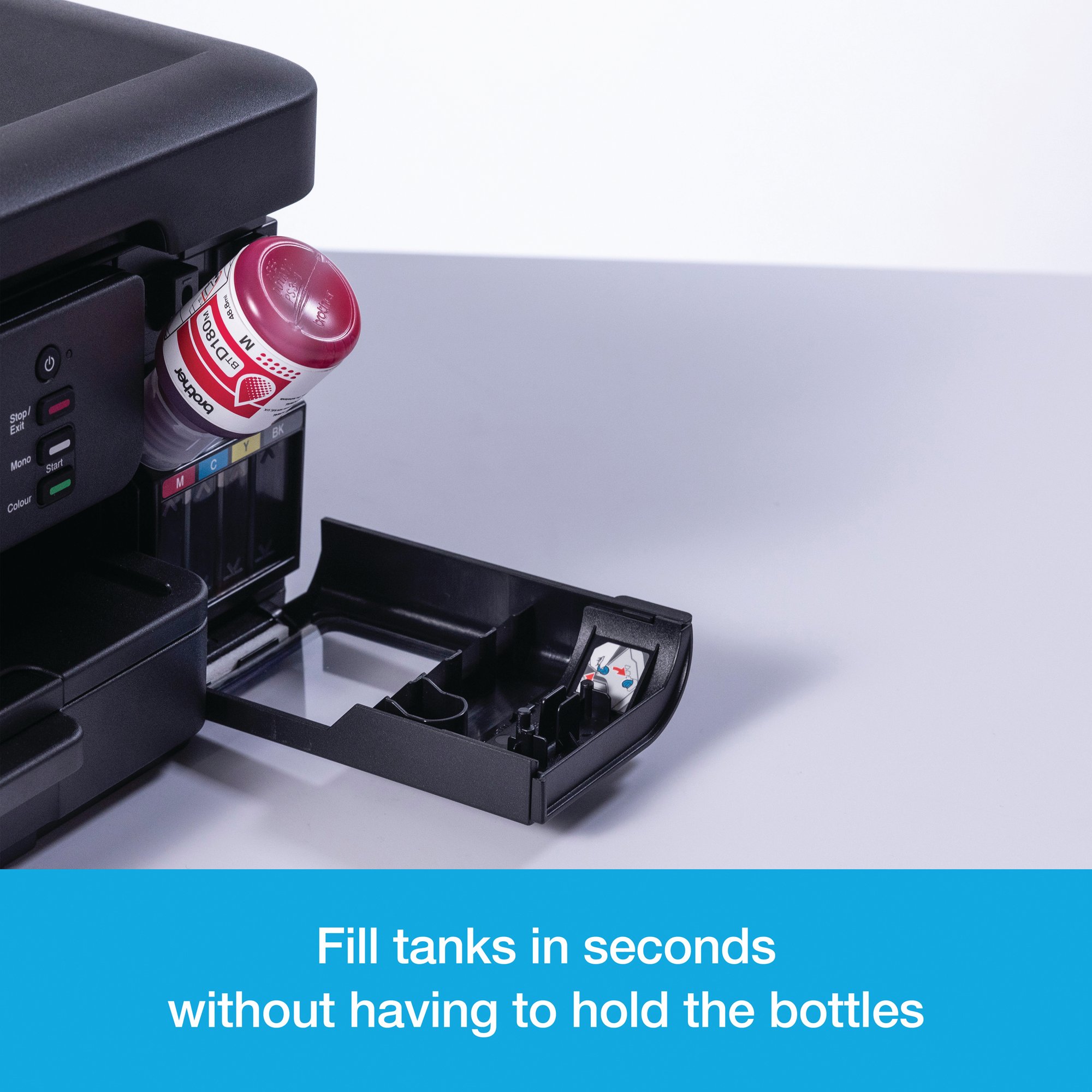 Print more for less with super-high yield ink bottles and easy fill ink tanks that lower your colour printing costs. Whether in your home, office, living room, or working from the kitchen, enjoy effortless connectivity and quick hassle-free printing with this ink tank printer.
