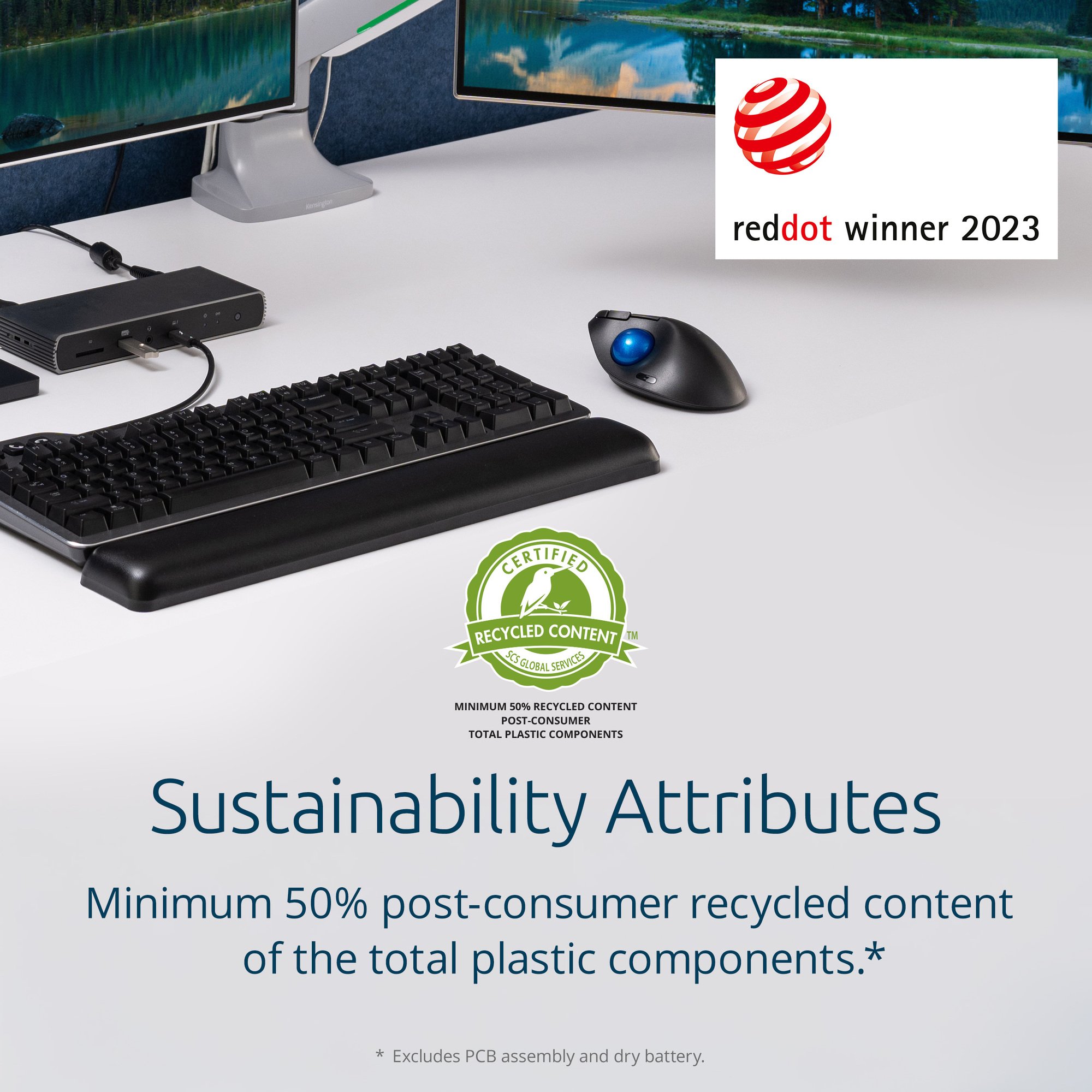 The Kensington Pro Fit Ergo TB450 Trackball allows users to effortlessly transition from a mouse to a trackball and unlock the ergonomic advantages and space-saving benefits it offers. With its thoughtful design, the TB450 utilises 50% recycled material, reducing the use of new plastics. Bluetooth Low Energy or 2.4GHz wireless connectivity offer maximum flexibility. The TB450 also features a long battery life, a patented ball ejection system that simplifies cleaning and precise optical tracking.