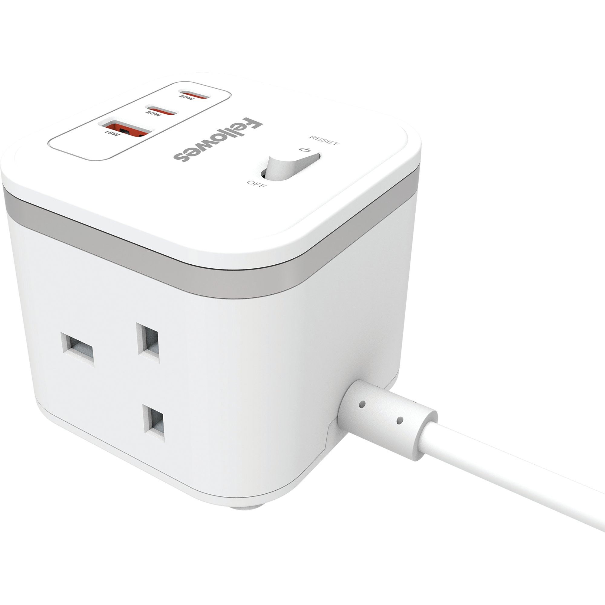 Fellowes Power Cube Type G UK/IE 3 Sockets 1 USB-A + 2 USB-C Ports White 100137166