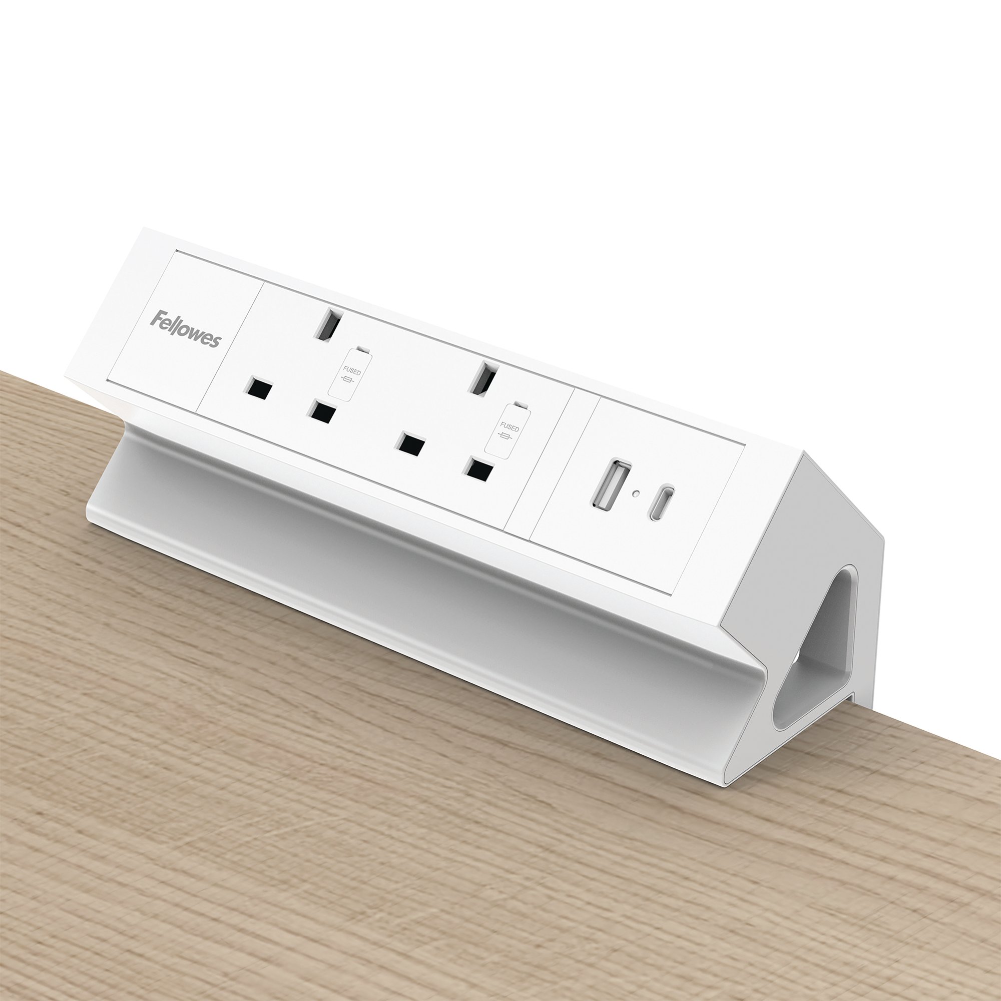 Fellowes Power Desk 2 Type G UK/IE 2 Sockets 1 USB-A + 1 USB-C Port White 100137181