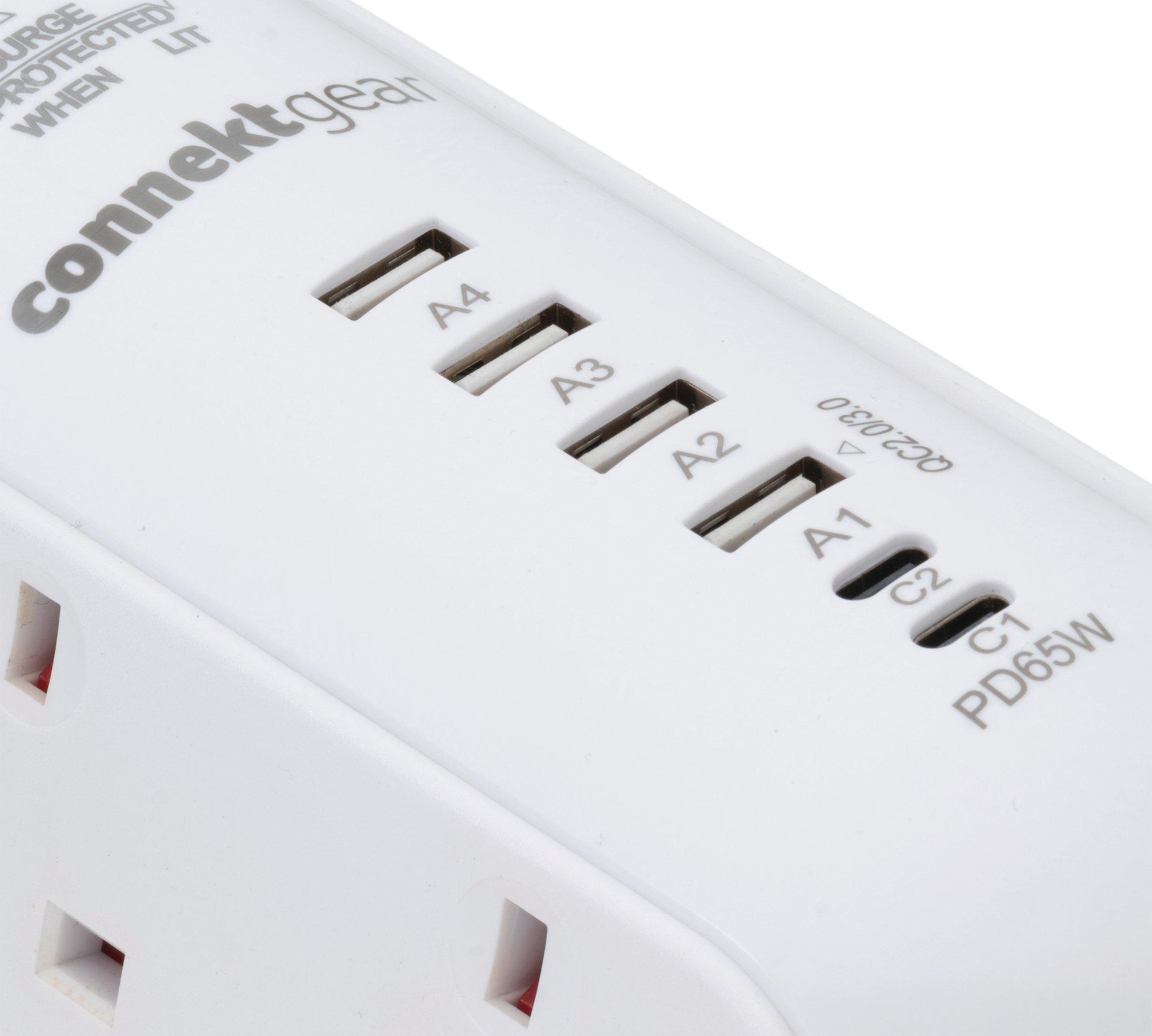 Connekt Gear 2m Desktop 6 Way Surge Protector With 4 USB-A and 2 USB-C 65W 27-6020S/USB