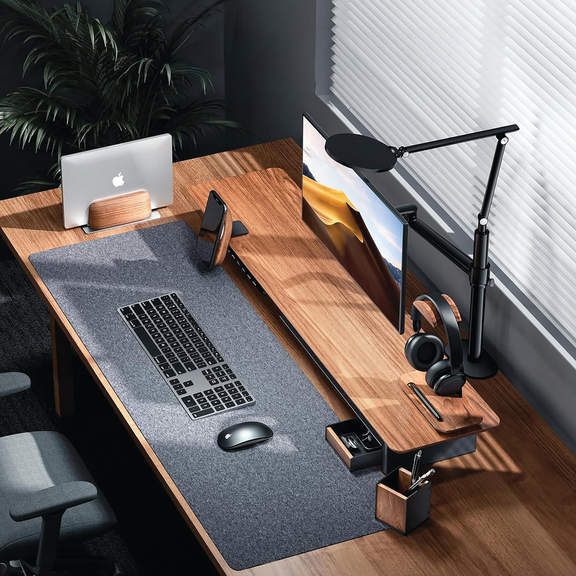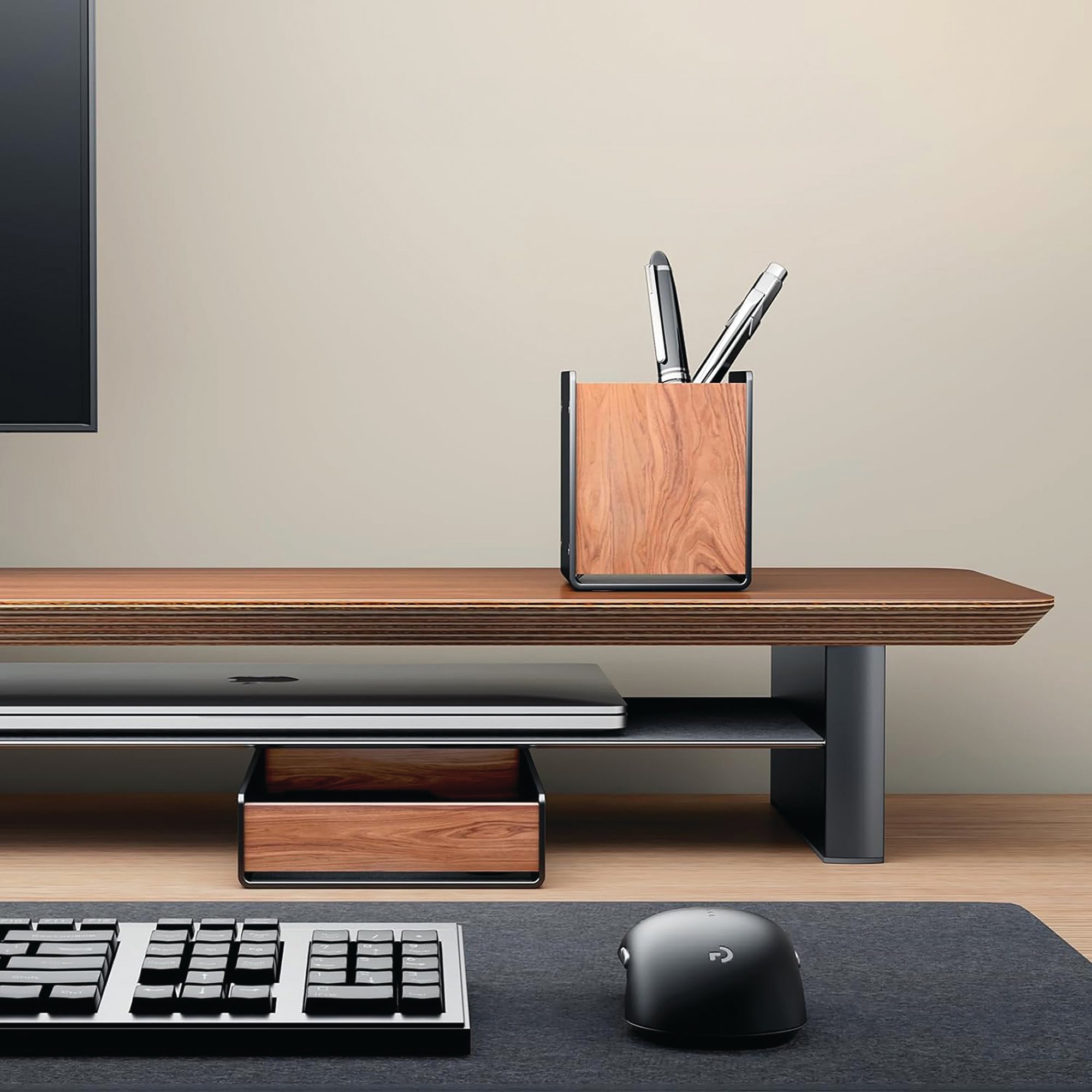 With a touch of design and modernity, combining walnut wood and black aluminium, the Alba desktop tray gives a new aesthetic dimension with a mix of colour and materials to transform workplaces with style and elegance. Keeping desktop essentials at hand, whilst still contained to avoid small items such as pens and pencils from rolling away.