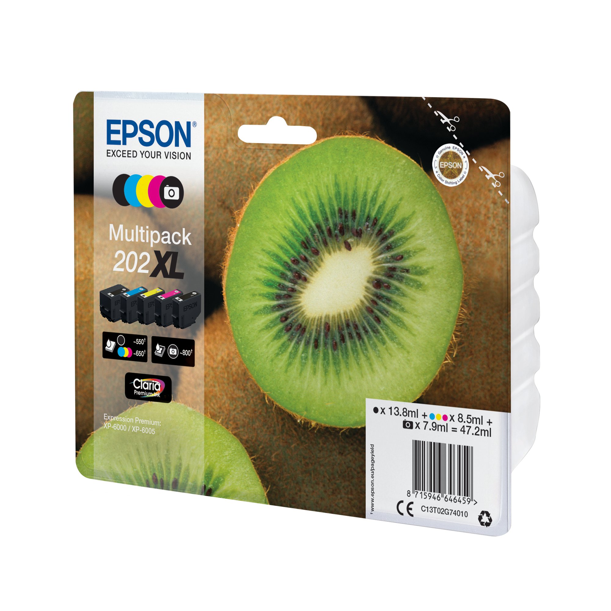 Epson 202XL Kiwi Claria Premium Ink Cartridge High Yield CMYK/Photo Black Multipack C13T02G74010