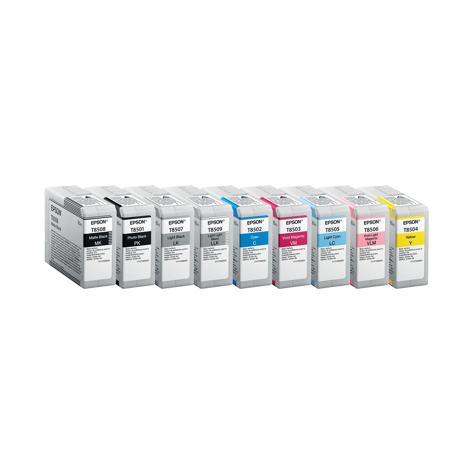 Produce high-quality photo prints with the genuine Epson T8507 ink cartridge. Packed with 80ml of light black ink, this ink this cartridge is designed to deliver exceptional quality images. Compatible with the Epson SureColor SC-P 800 Series printers.