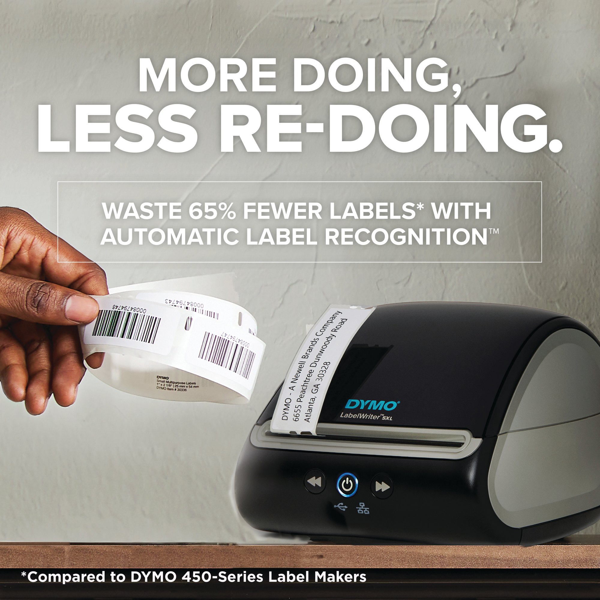 The Dymo LabelWriter 5XL with direct thermal printing technology eliminates the need for ink or toner. Create and customize 60+ label types through USB connection or connect to a network through LAN connection with free Dymo Connect for desktop software. Print crystal clear barcodes, text, graphics and more with 300 dpi resolution. The Dymo LabelWriter 5XL automatically recognises and displays the label size, type and number of labels remaining for easy, stress-free printing. The ideal choice for ecommerce sellers, printing 4x6 inch shipping labels directly from Amazon, eBay, Etsy and more.
