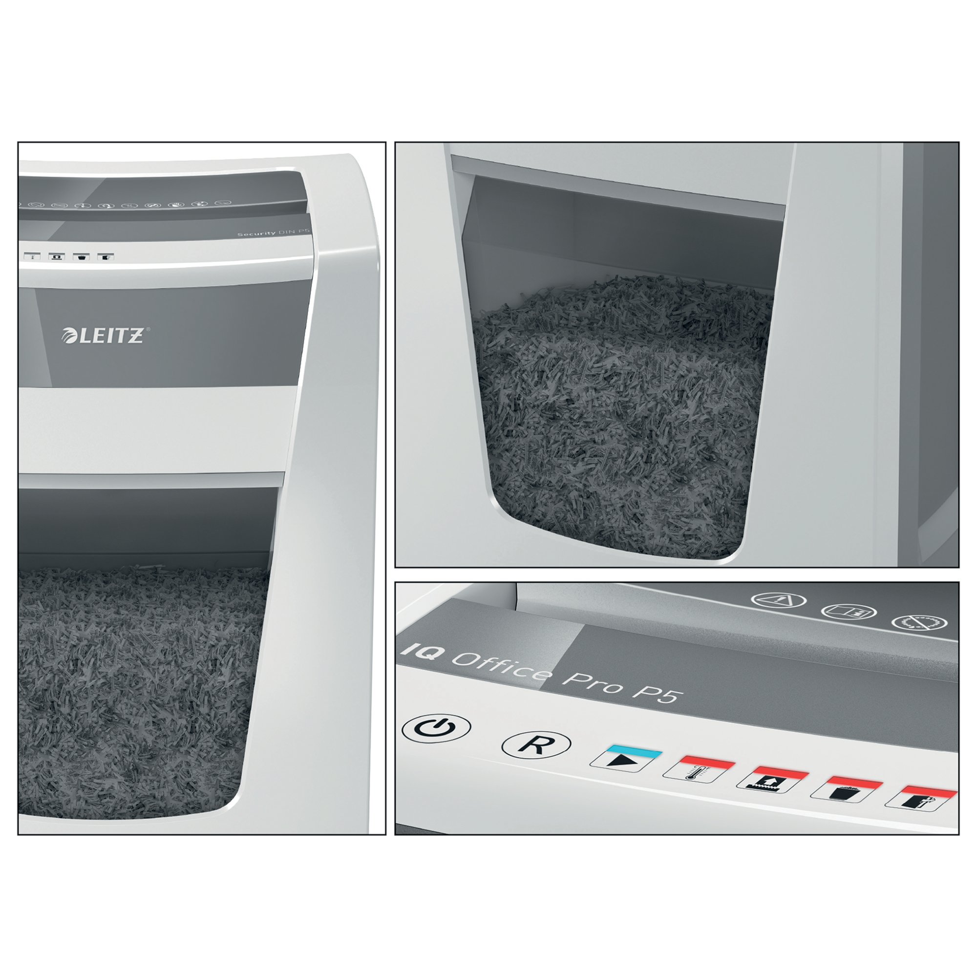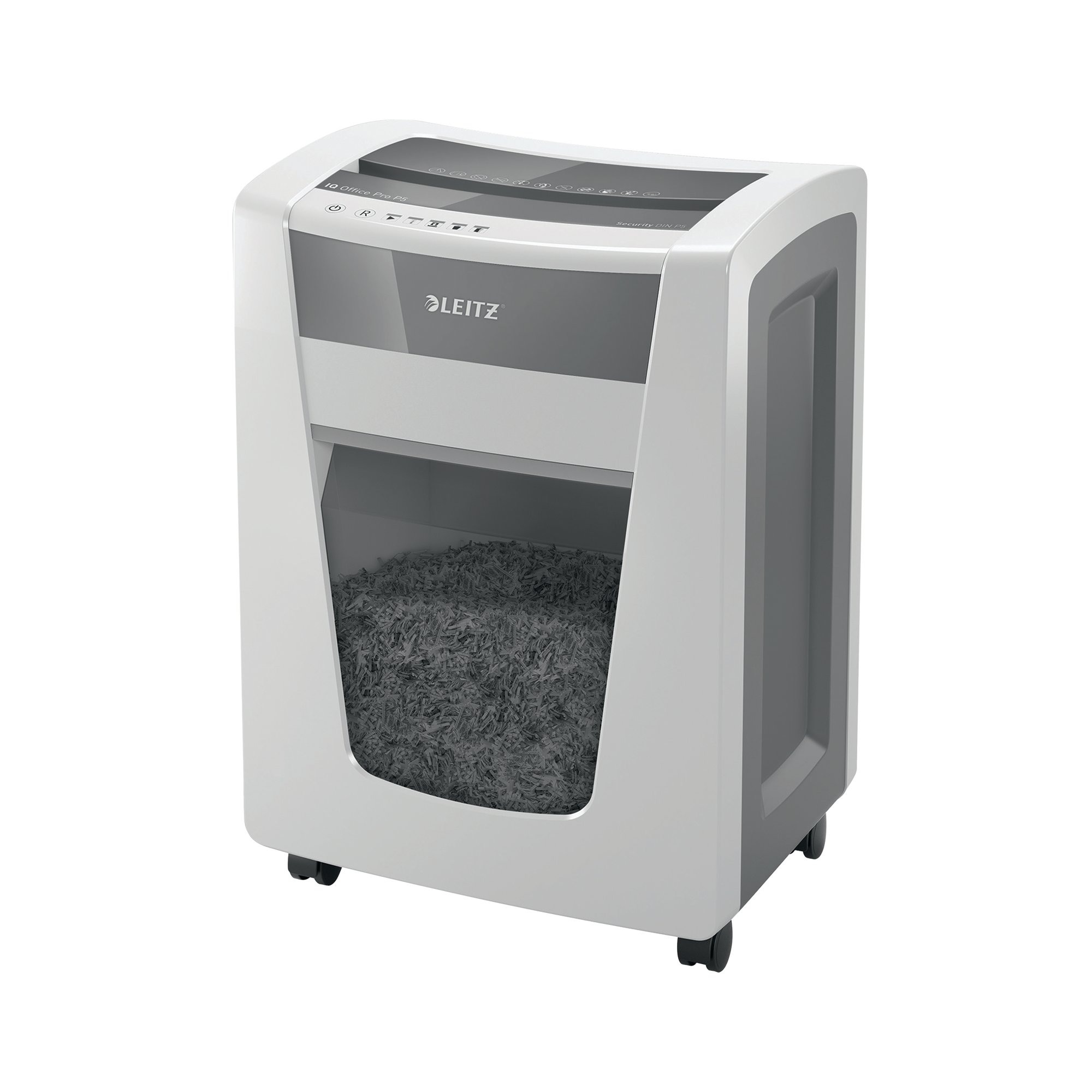 The Leitz IQ Office Pro Micro-Cut Shredder offers the ultimate in style, performance and security. This model features high performance Security DIN P-5 cut for high security and waste compaction. Perfect secure shredding every time, ideal for office use. Higher security and excellent performance with this anti jam, quiet and long running shredder. The Leitz IQ shreds up to 15 sheets of A4 paper (80gsm) into 2x15mm micro cut pieces allowing more in the generous 30L bin with simple operation using touch controls. Shred for longer with a class leading 4 hour run time, for a completely uninterrupted shredding experience.