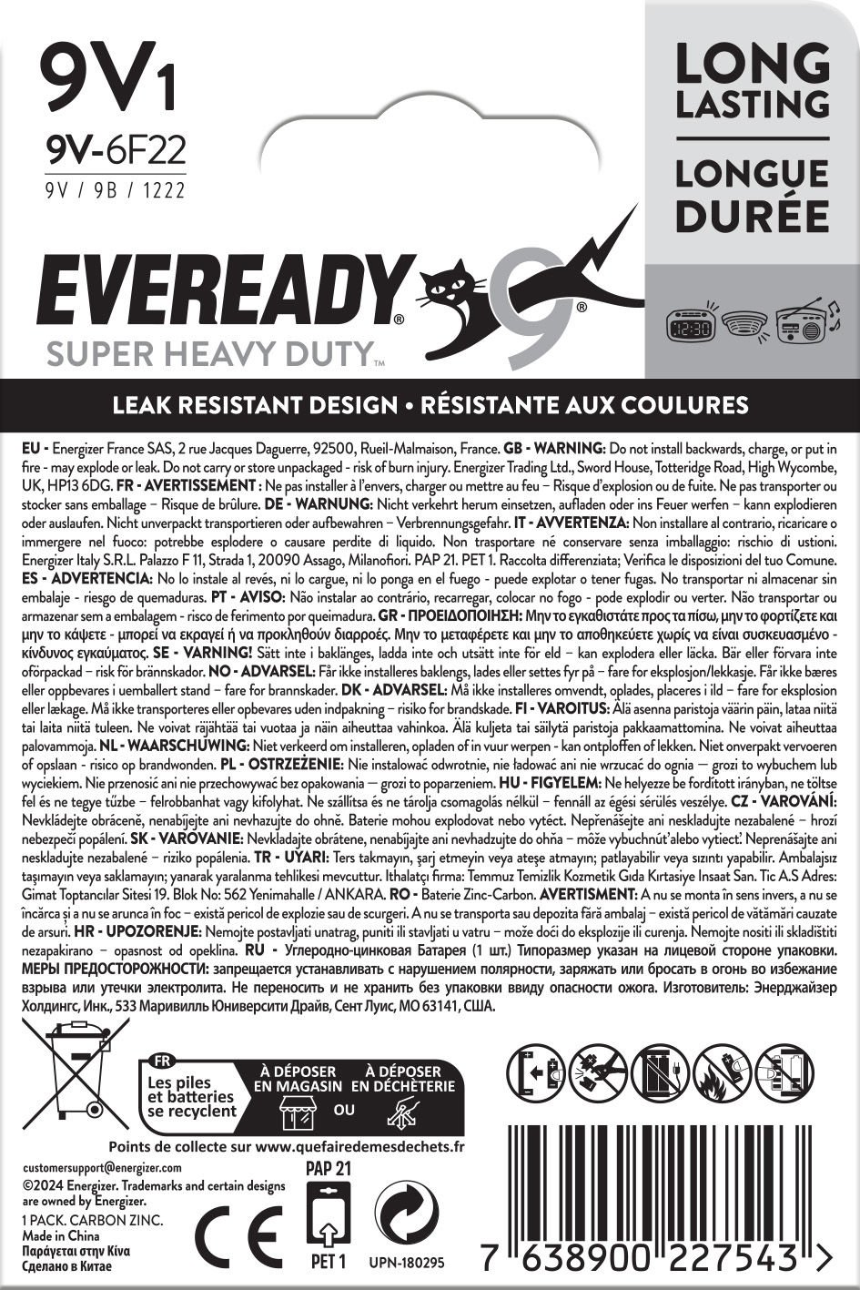 Eveready Super Heavy Duty 9V Battery 6F22BIUPUp one level