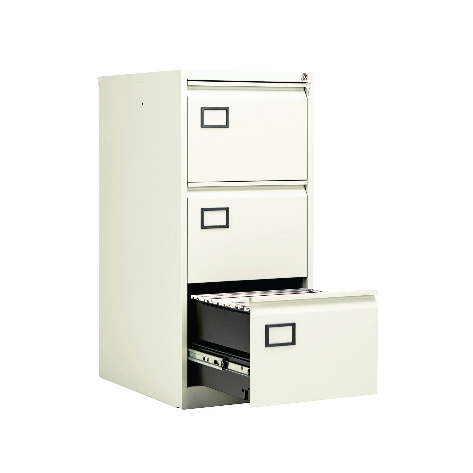 Store your files and documents safely and securely in this stylish, three drawer filing cabinet. Made from robust material and featuring an anti-tilt mechanism it offers sturdy support ideal for everyday use. Each drawer can be fully extended for ease of access and are mounted on smooth, rollerball runners that enable you to open and close them effortlessly. The cabinet can be locked offering ultimate security for your confidential papers.