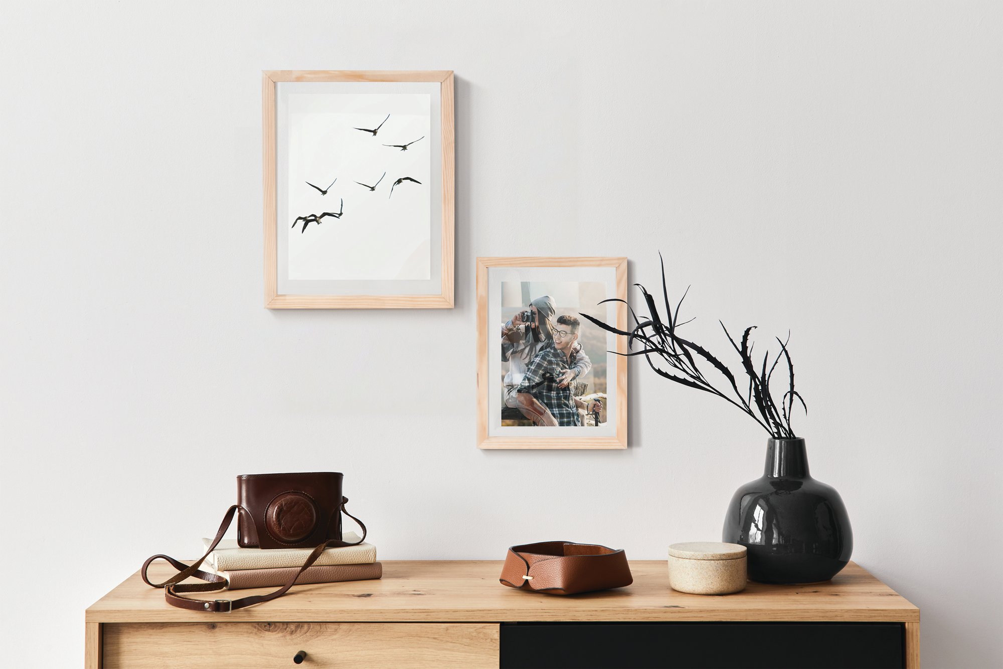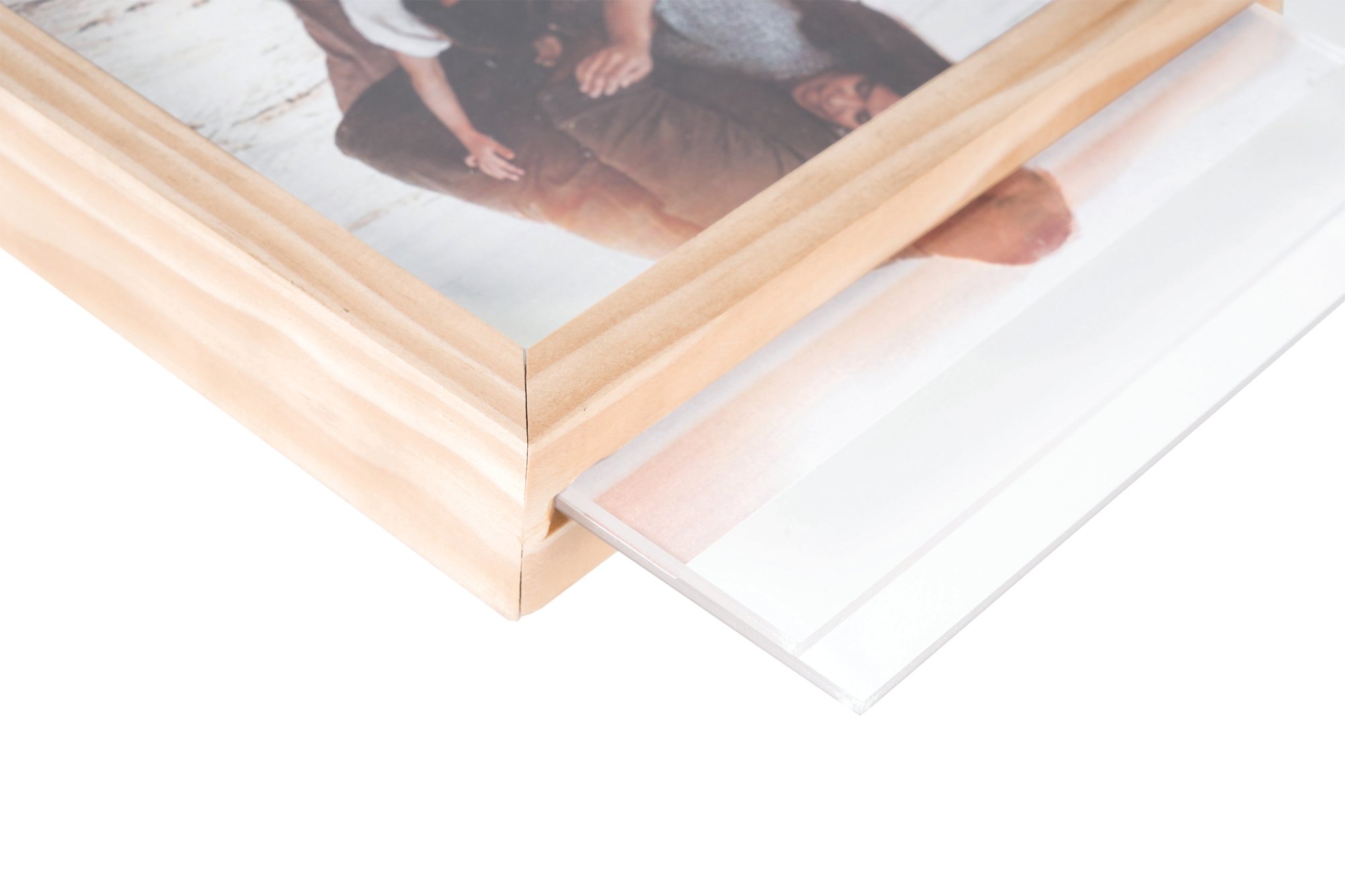 Crafted from PEFC-certified Pine, this Floating Photo Frame isn't just a decor piece; it's a commitment to eco-friendliness and premium quality. PEFC certification ensures that the wood is sourced from sustainably managed forests, making each one a part of the larger canvas of environmental responsibility. The frame's design is a harmonious blend of nature and modernity. Pine, with its subtle grains and warm tones, adds a touch of organic essence to any space. The frame doesn't just hold your memories; it preserves the moment in an ethereal embrace. It can be placed on the wall or simply as a tabletop frame and maximized with the double-sided exhibition area, allowing portrait or landscape orientation. Display your photographs, travel souvenirs, concert programs, awards, certificates, artwork, flowers or plant material. Easy installation with wall mounting kit included.