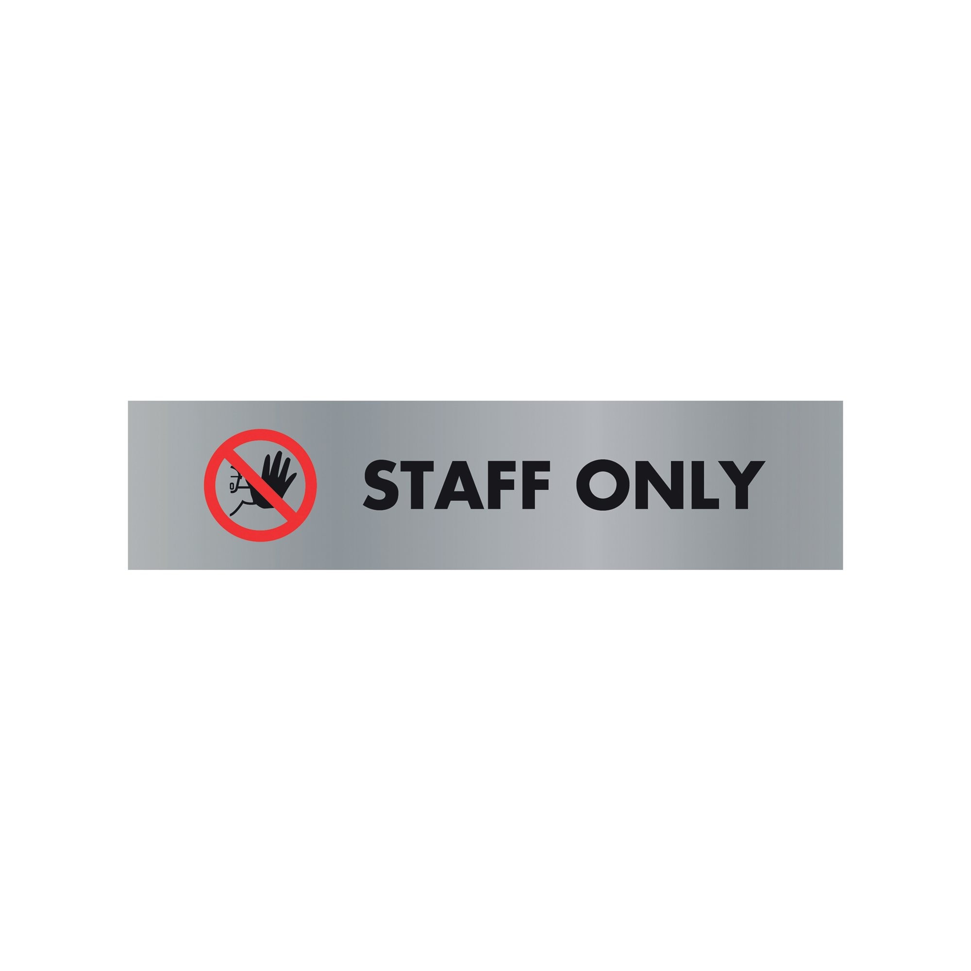 This acrylic, aluminium effect Staff Only sign is for use on the entry to staff only areas to inform and instruct customers, employees and visitors with clear lettering reverse printed and classically rendered from 2mm acrylic with a brushed aluminium effect background.