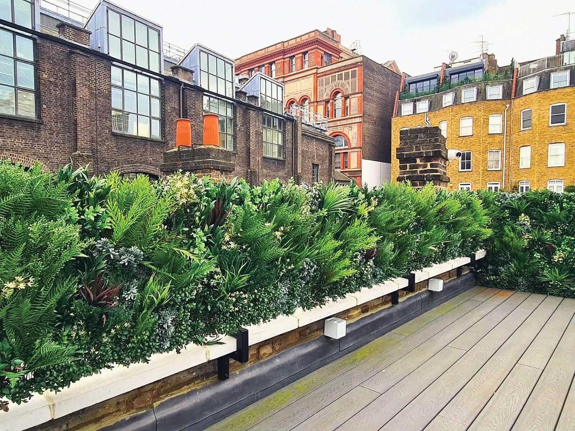 The Lush Green Texture Box comprises a tumble of wild grasses and earthy ferns merged with green-fused and delicate flowers.
