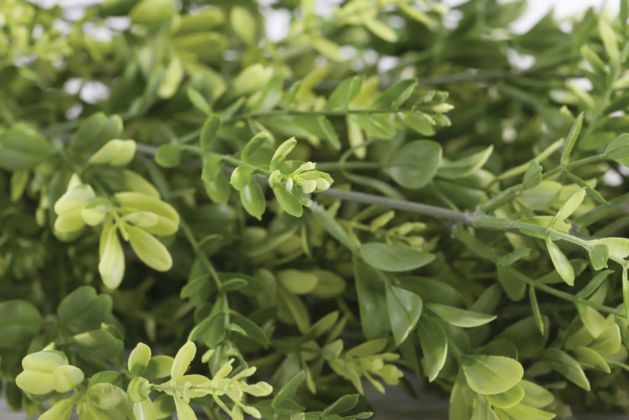 Realistic Buxus planting for a hanging finish that looks at home added to a green wall panel, or on their own.