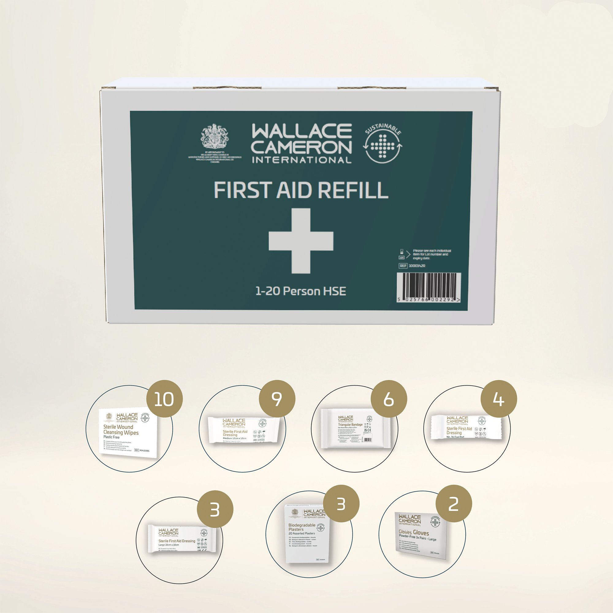 The Wallace Cameron Sustainable HSE Refill allows businesses to top up their first aid kits in line with Health and Safety Executive (HSE) guidelines, without the need to replace the full kit. Helping businesses meet Health and Safety Executive (HSE) standards while actively reducing environmental impact, this refill kit is a practical, compliant solution for workplaces looking to make more responsible choices. Featuring internal packaging of medical-grade paper and recyclable or recycled cardboard and components selected for their lower environmental impact, using viscose, bamboo, and recycled plastic where possible.