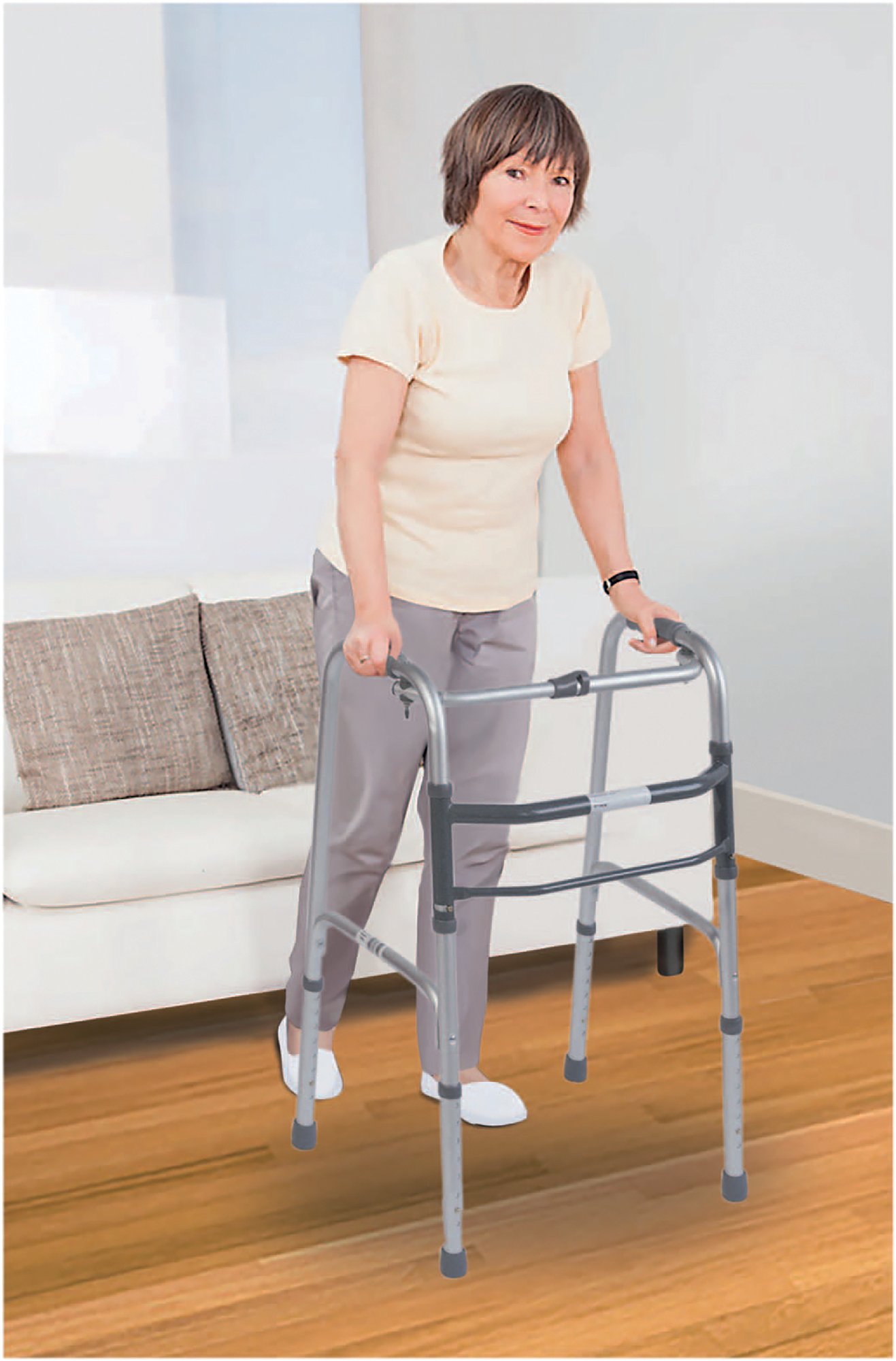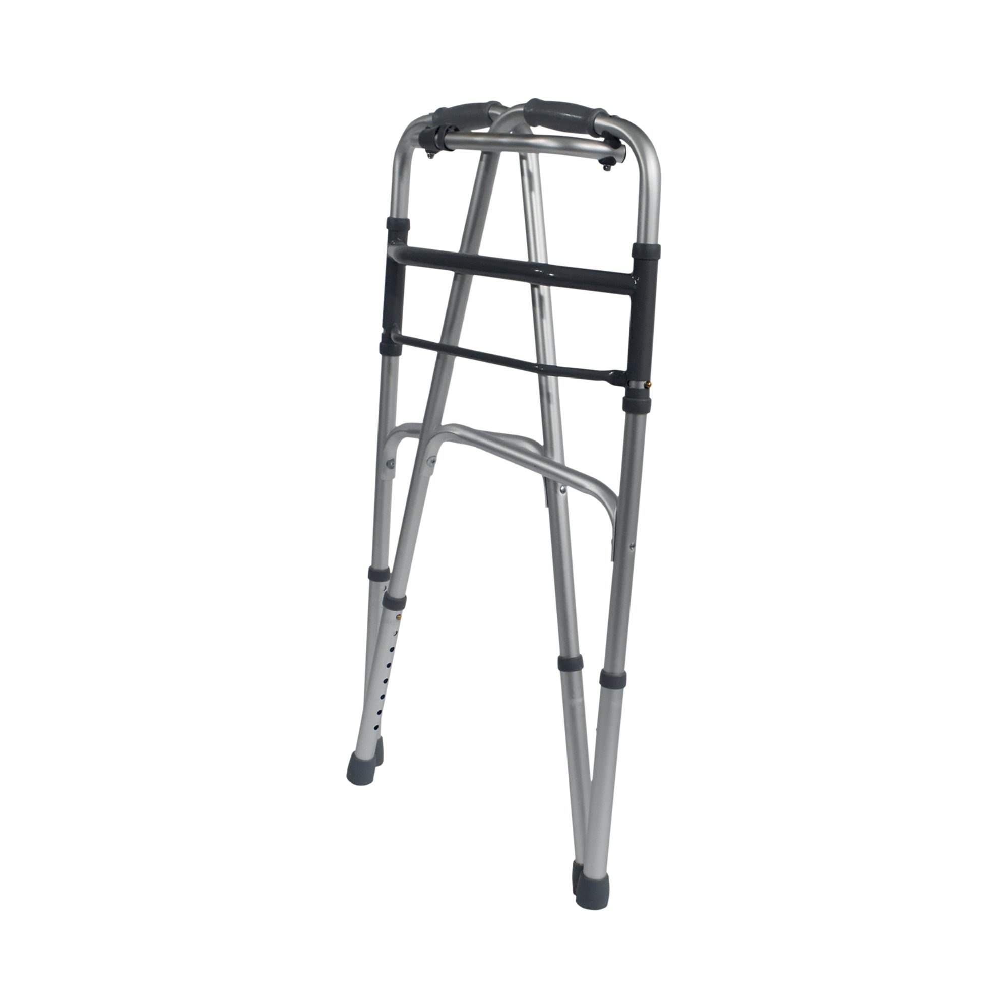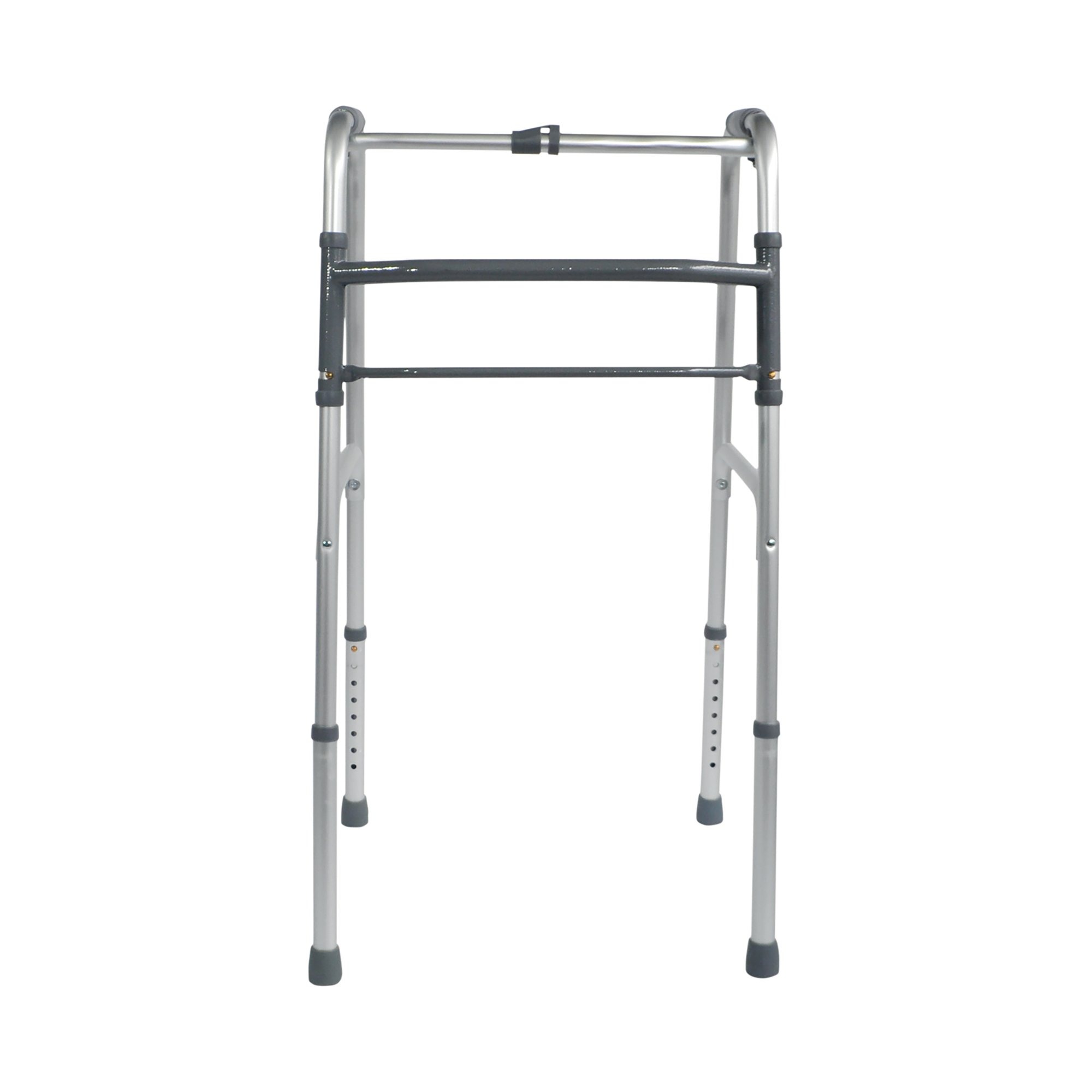 Lightweight Aluminium Folding Walking Frame with a wide base for maximum stability, ideal for home use. The lightweight aluminium walking frame features soft grip handles, one button folding function and height adjustable legs. This frame can be folded when not in use and is a real space saver. Ideal for travel use. Maximum User Weight Limit 133kg (21 stone). Supplied without wheels.
