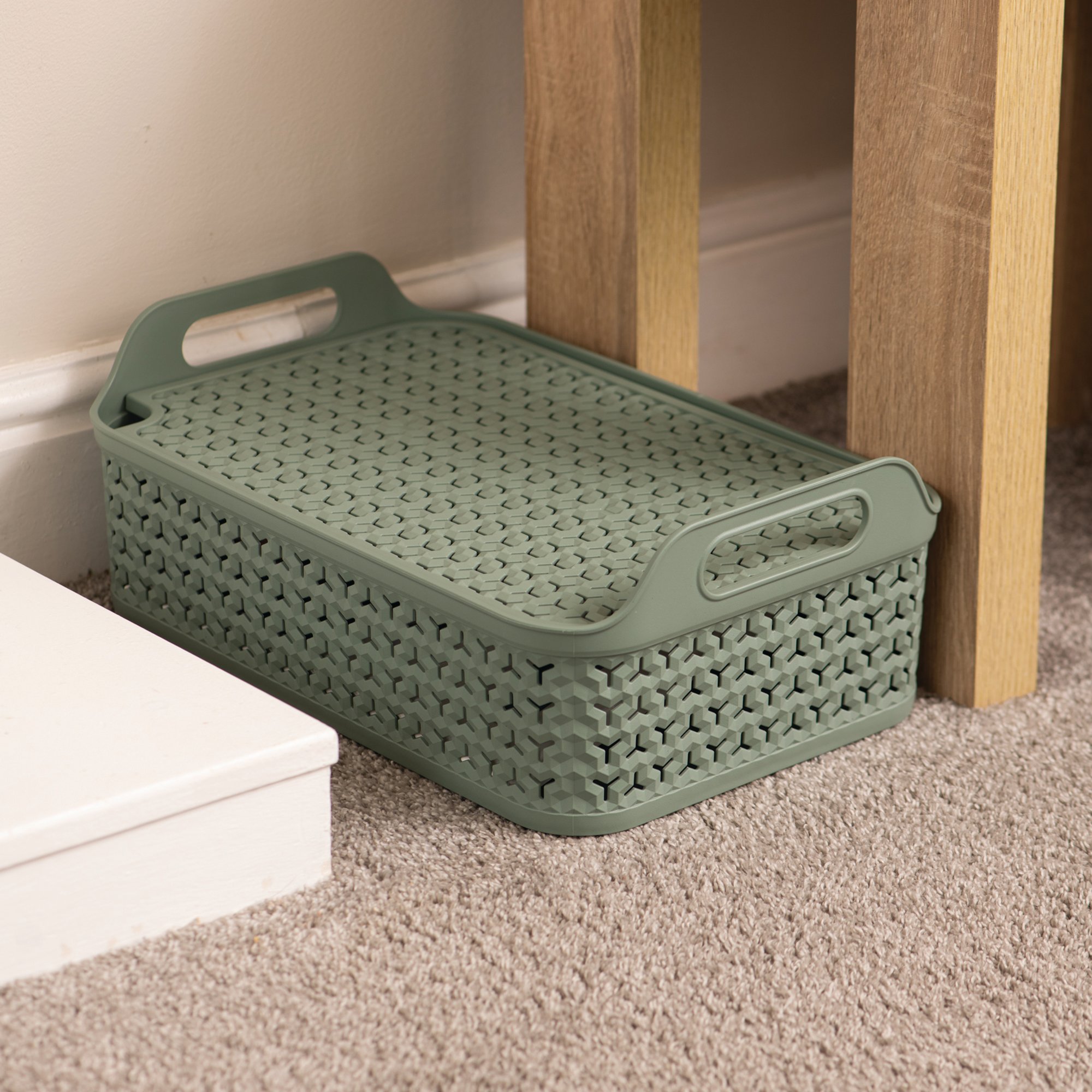 Strata Shallow Basket with Lid 12L Green XW132-LPG-VW