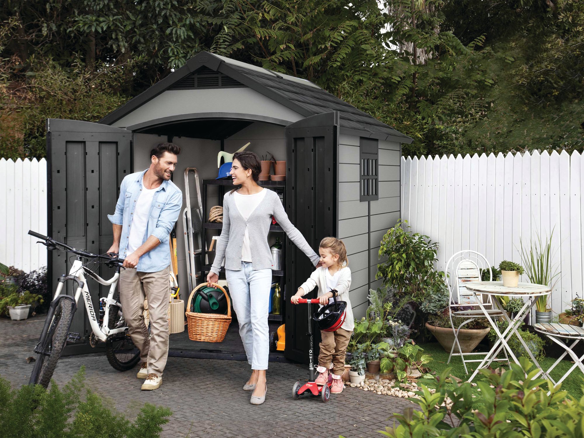 The Premier Shed is made of an ultra rugged, durable resin which is weather-resistant, and UV protected. Its double wall panelling makes it a lot more robust than a standard shed. It features wide double doors for easy access, integral floor panel and ventilation that keeps your stored items clean and dry. A fixed window provides natural light. The ceiling is high enough to let you move around with ease. There is also a padlock hasp for optional added security. Comes with a 10 year manufacturer guarantee.