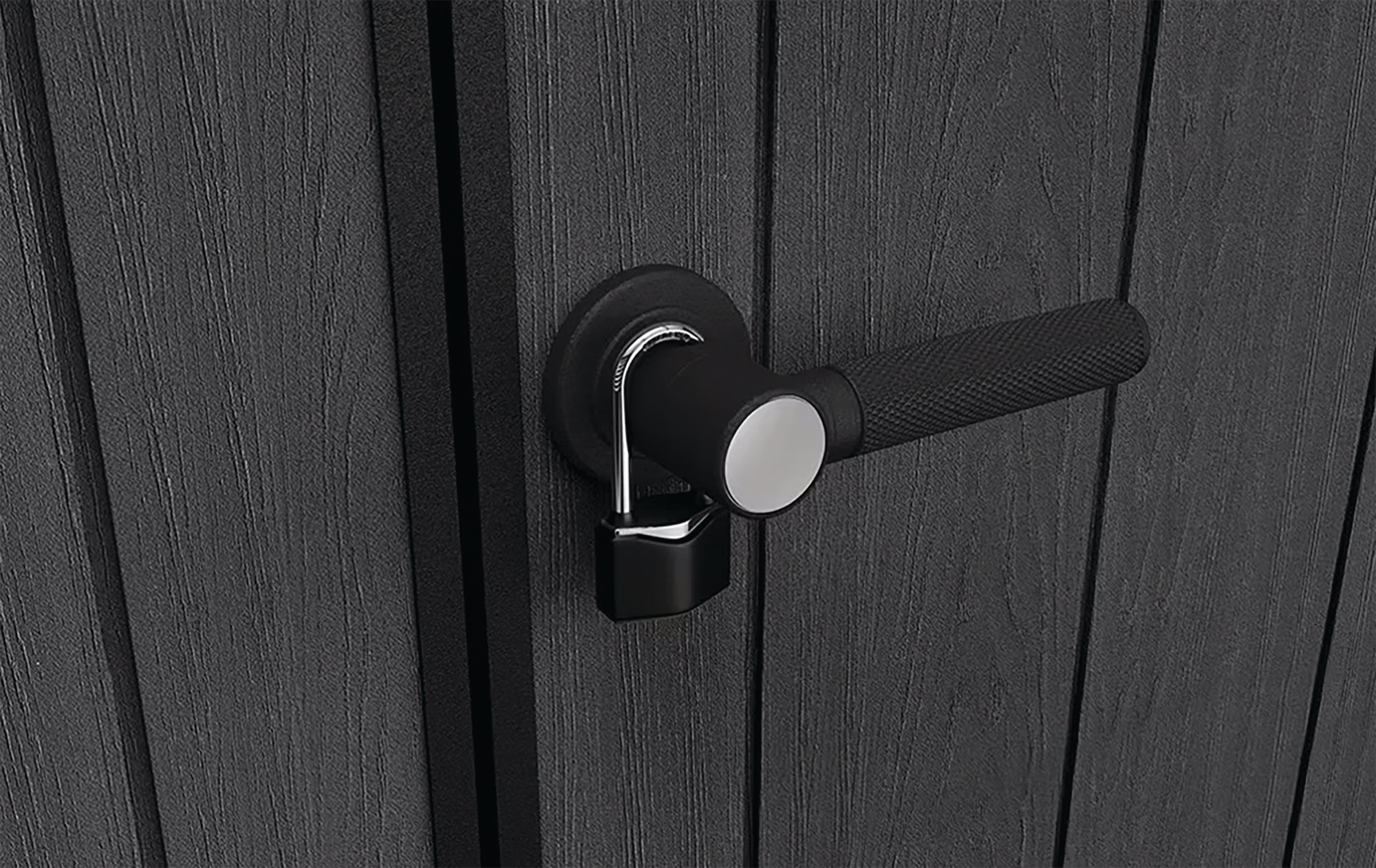 The Oakland Shed is built for durability, its weather-resistant Duotech wall panels provide the look and feel of worn wood. But unlike wood, it will never rot, rust, or dent, and the original finish won't peel. They can also be painted if desired. It includes a heavy-duty floor panel, wide double doors, fixed windows and skylight. Easy to assemble thanks to pre-cut tongue and groove panels. It also comes with a stainless steel locking system for additional security (lock not included). Comes with a D clip wall anchor kit, each set includes 10 anchors that can hold up to 50kg with each D clip holding up to 5kg.