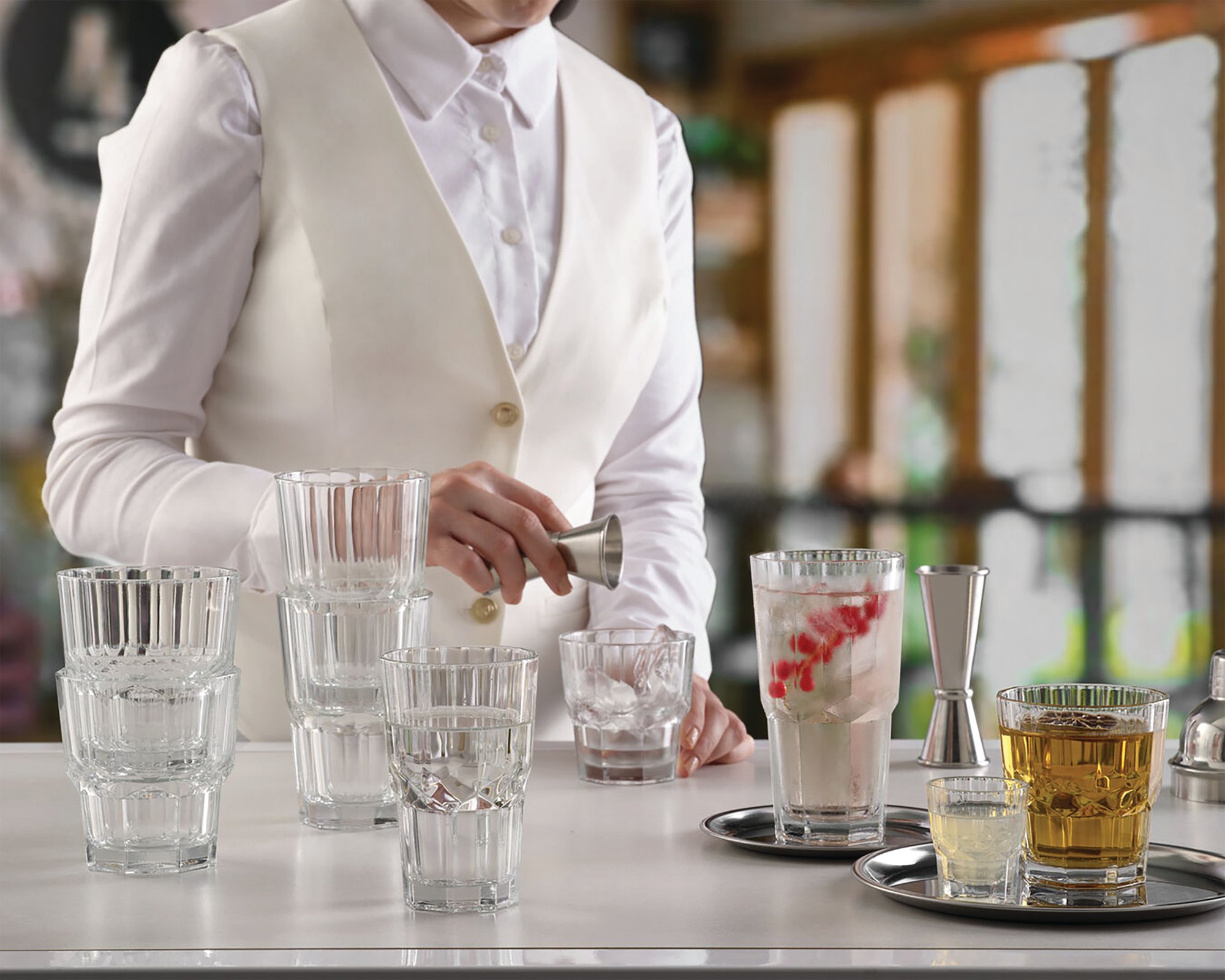 Discover our fully toughened glass range, a remarkable fusion of rugged aesthetics and practicality. This collection seamlessly marries the rugged charm of its design with the durability of toughened glass, all while offering the convenience of stackability. It's a timeless addition that promises to become a classic choice for any venue. With a versatile selection of 7 essential pieces, this range opens up endless possibilities for enhancing your dining experience.