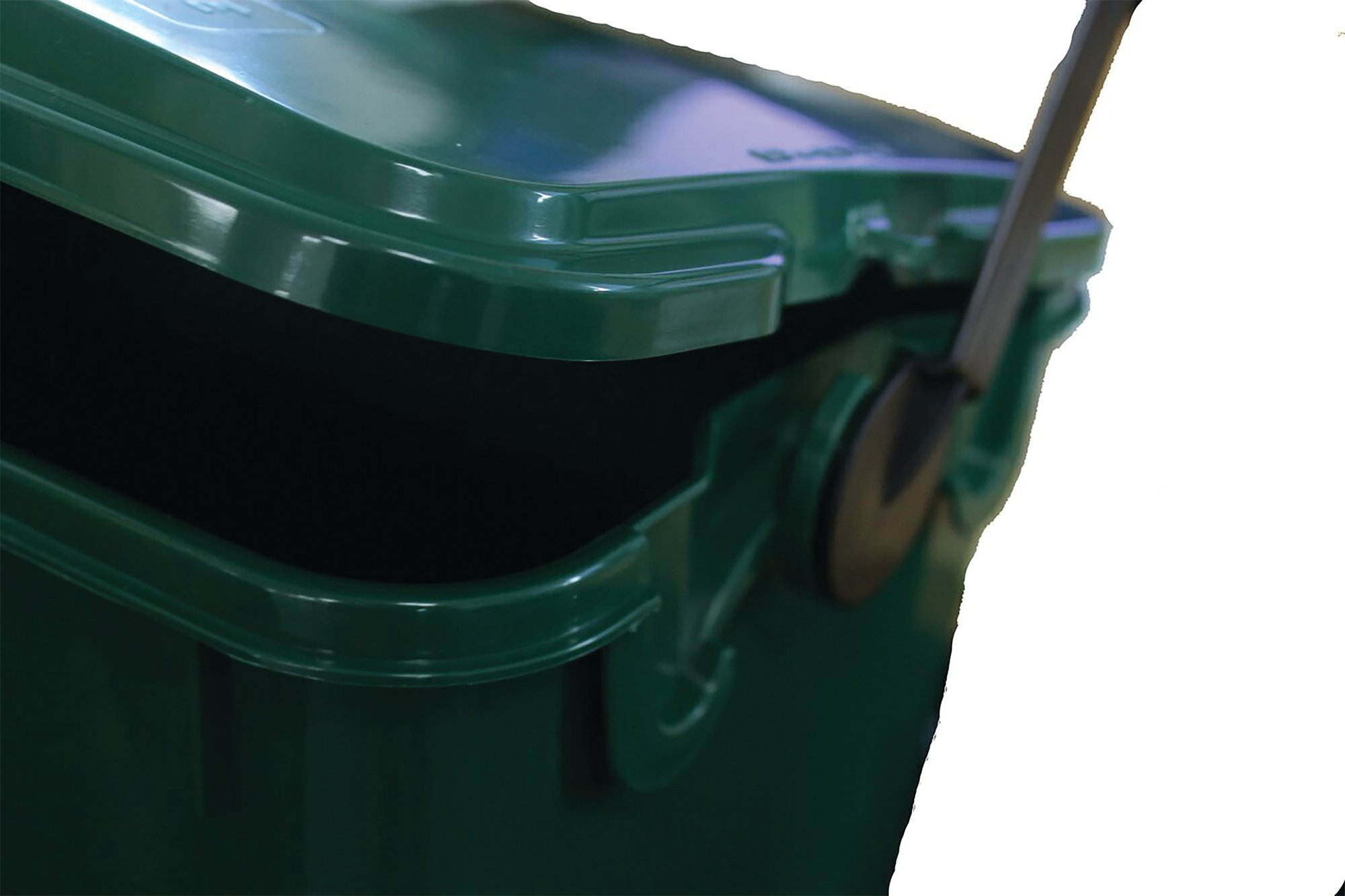 This 7 litre kitchen food waste bin with lid features a lid lock mechanism. Made by injection moulded polypropylene which has 75% recycled content. Supplied in green, the bin measures: W280 x D205 x H215mm.