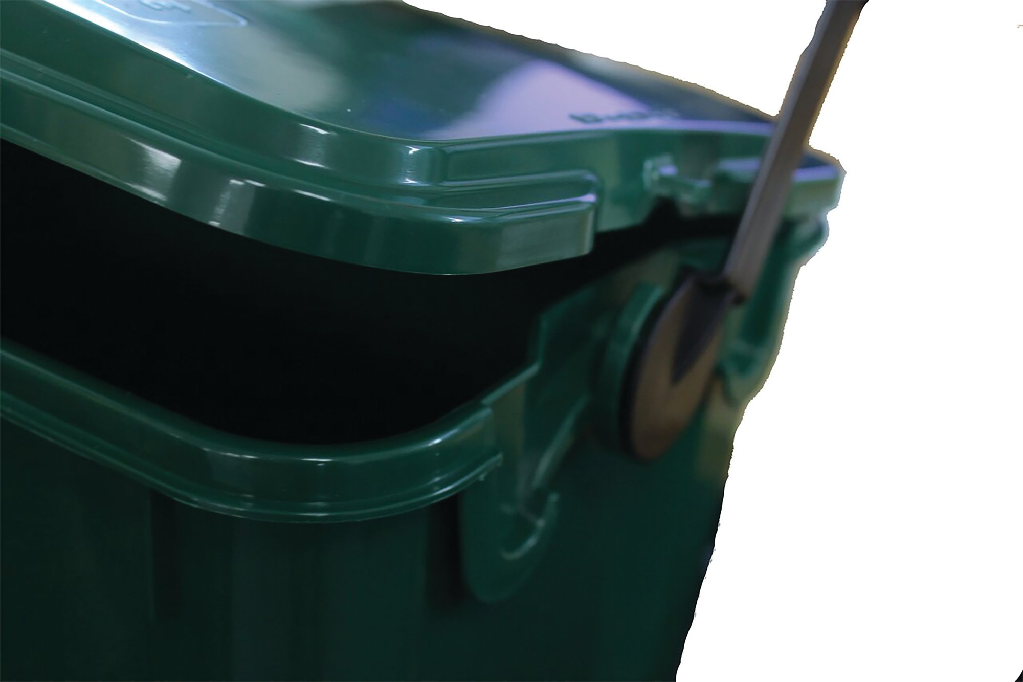 This 10 litre kitchen food waste bin with lid features a lid lock mechanism. Made by injection moulded polypropylene which has 75% recycled content. Supplied in green, the bin measures: W260 x D220 x H275mm.