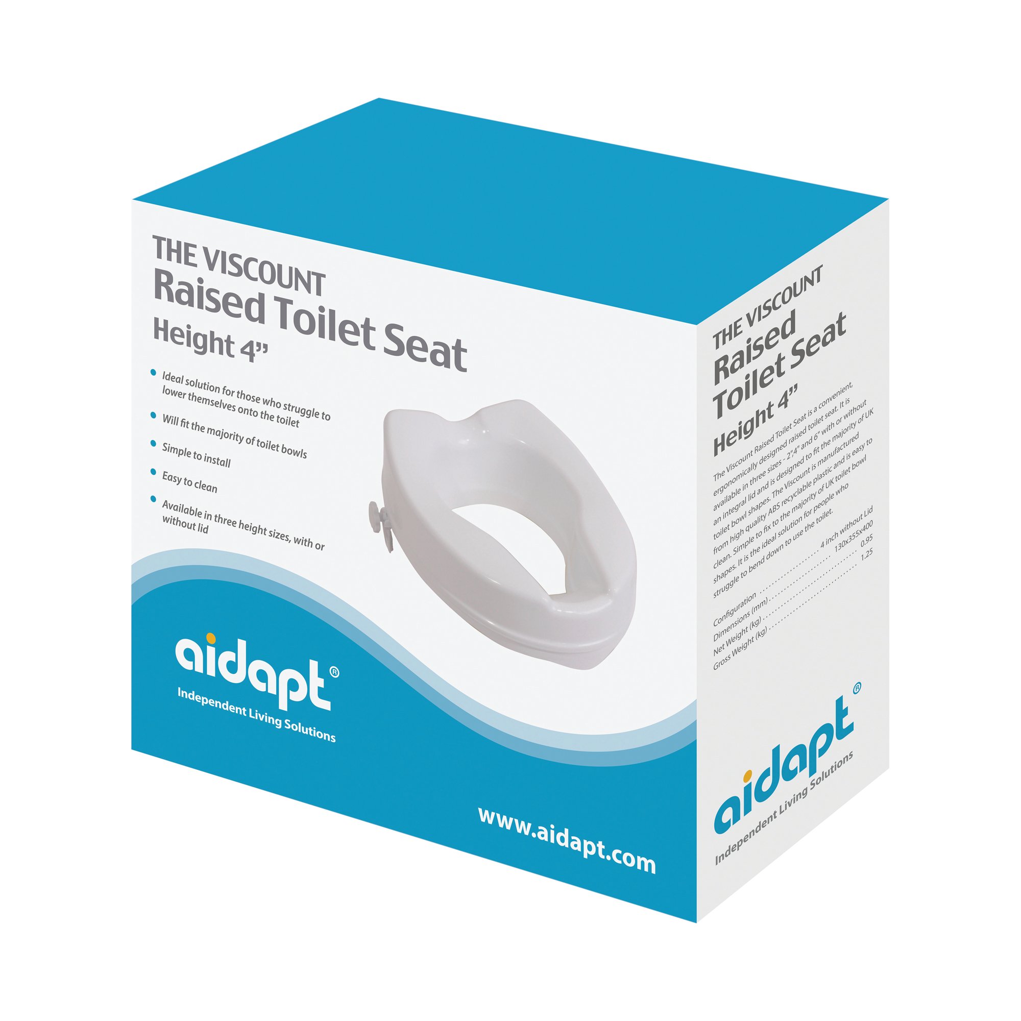 The Viscount 4 Inch Raised Toilet Seat is a convenient, ergonomically designed raised toilet seat, designed to fit most toilet bowl shapes in the United Kingdom. Manufactured from high quality ABS recyclable plastic, the seat is easy to clean. Simple to fix to the toilet bowl, it is the ideal solution for people who struggle to lower themselves on to the toilet.