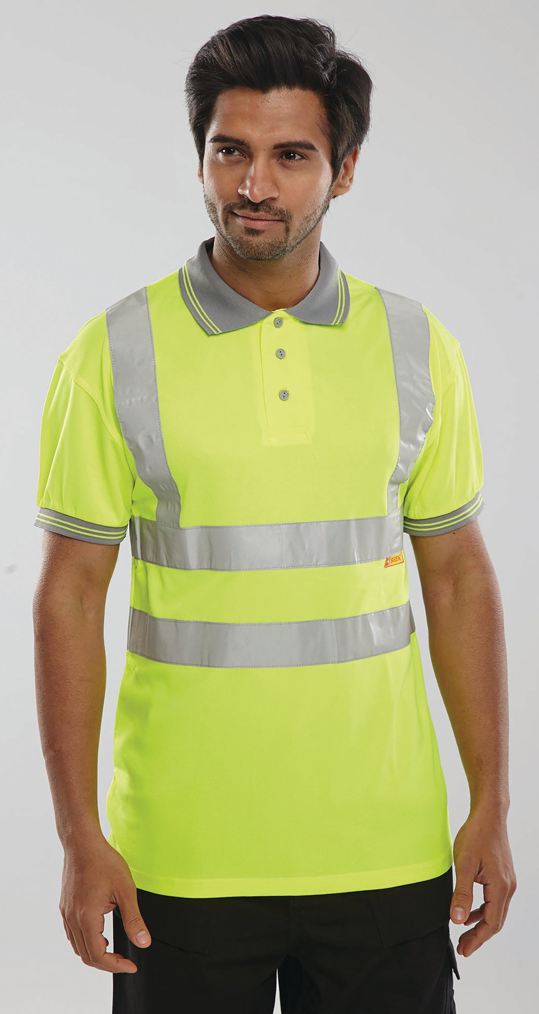 Beeswift short Sleeve High Visibility polo shirt made from 100% polyester Bird Eye fabric. Features 3 button placket, grey trim to collar and cuffs and retro-reflective tape. Machine washable at 40 degrees C up to a maximum of 25 wash cycles.