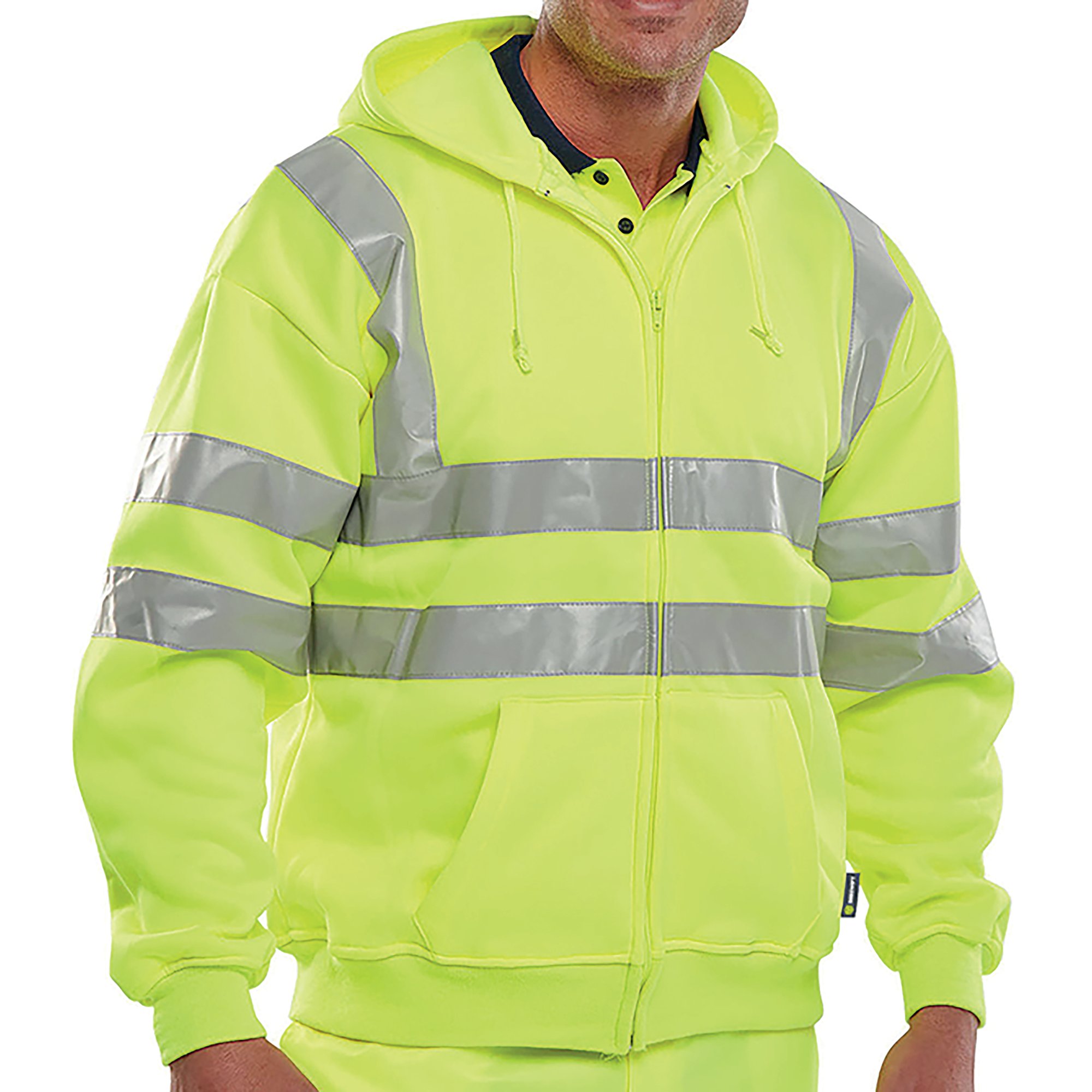Beeswift Zip Up Hooded High Visibility Sweatshirt Saturn Yellow 3XL BSHSSENSY3XL